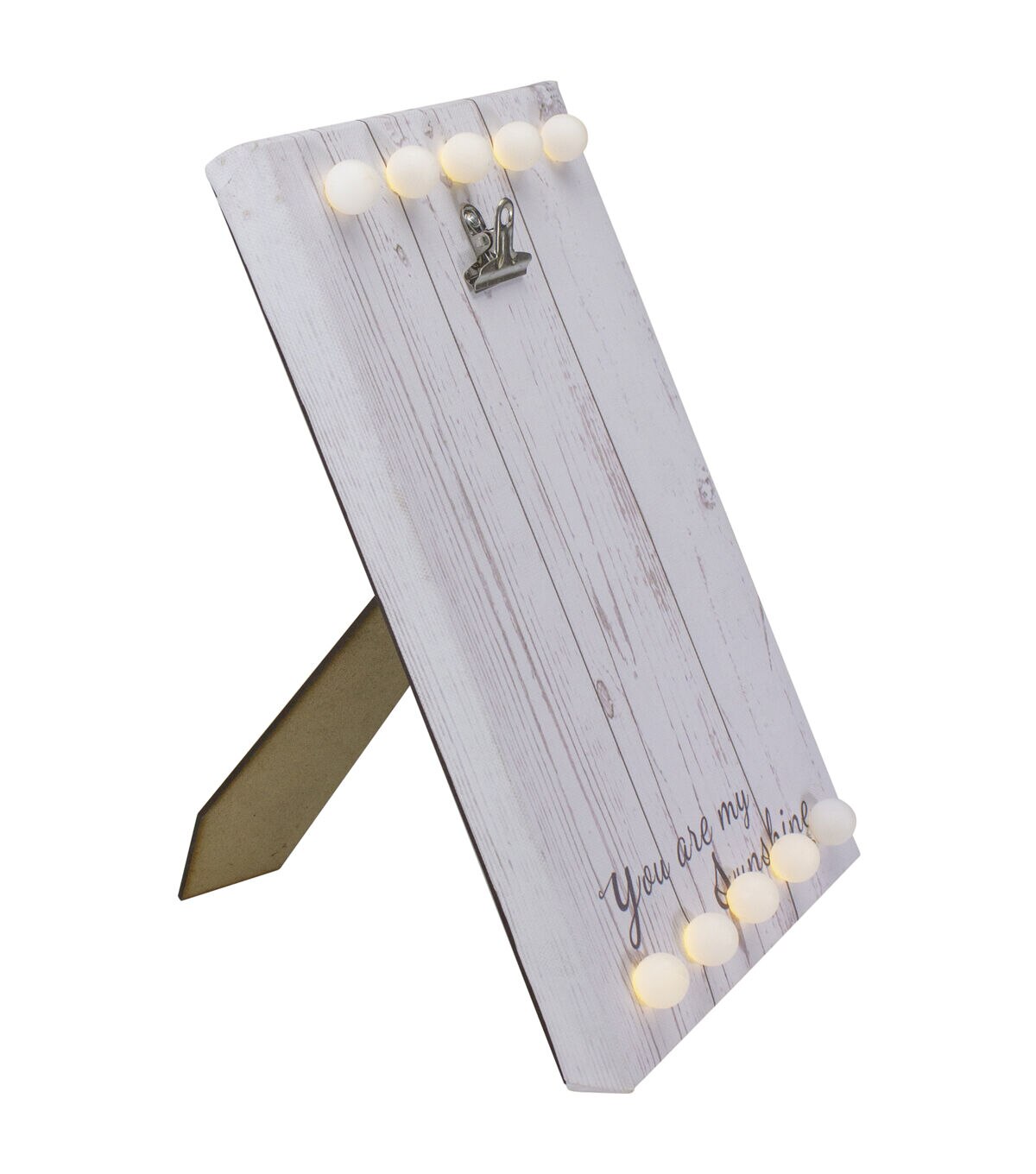 Honor that special person in your life with this lighted wall art with a photo clip. It will show onlookers who is special in your life with the phrase "You are my Sunshine". Hang a photo of your cherished furry friend and illuminate it with warm white lights.