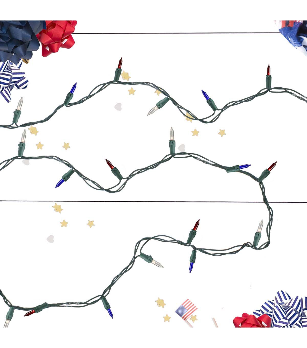 50 Count Red White Blue 4th of July Mini Light Set 10 ft Green Wire