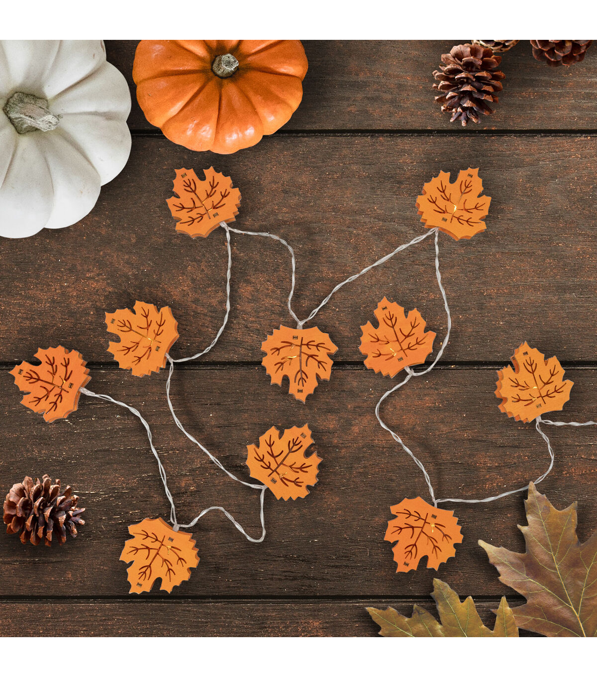 These battery-operated maple leaf fairy lights will make your Autumn decorating a breeze. Battery operated means you can place them anywhere. Durable and highly flexible these lights can be displayed quickly and easily for all of your holiday decorating needs.