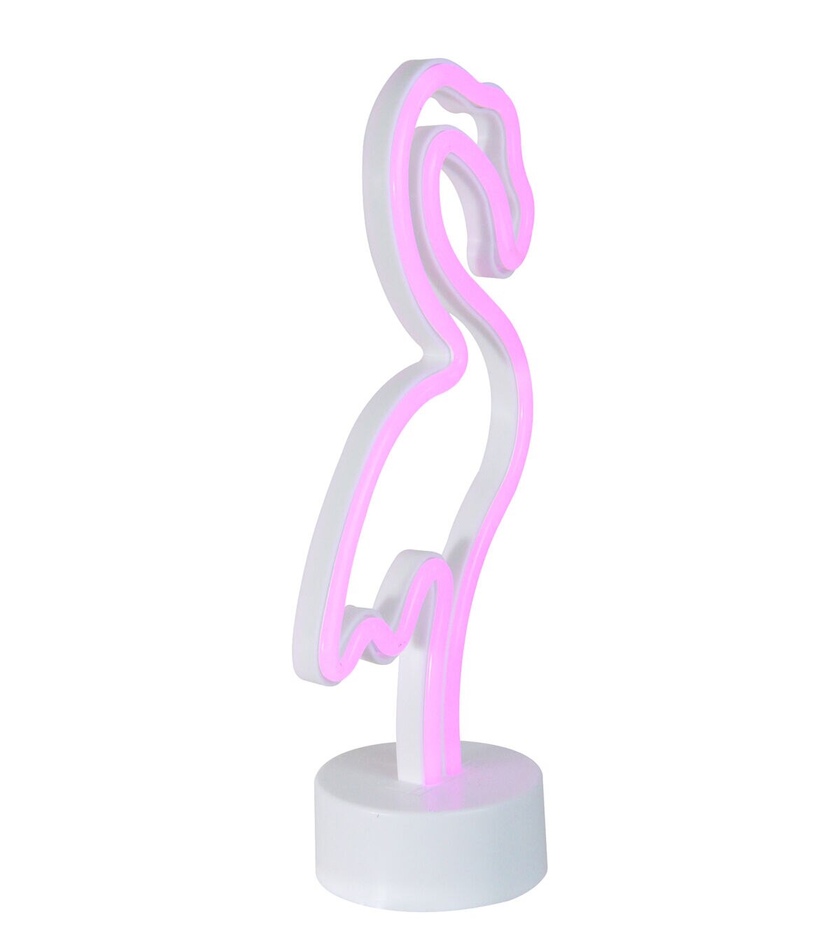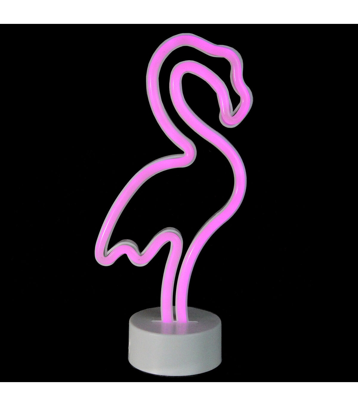 Embrace your inner flamingo!! Light up your desk mantle or table with this fun modern pink flamingo neon sign. Perfect for summer barbecues or beach party decorations. Product Features: Color: pink bulbs One-sided design LED lights use up to 80% less energy Super bright vibrant bulbs Bulbs stay cool to the touch Requires (3) AA batteries (not included) Comes with detachable base for easy storage Convenient on/off switch at the bottom Recommended for indoor use only Dimensions: 11.5"H x 5.5"W x 3.25"D Material(s): plastic/silicone