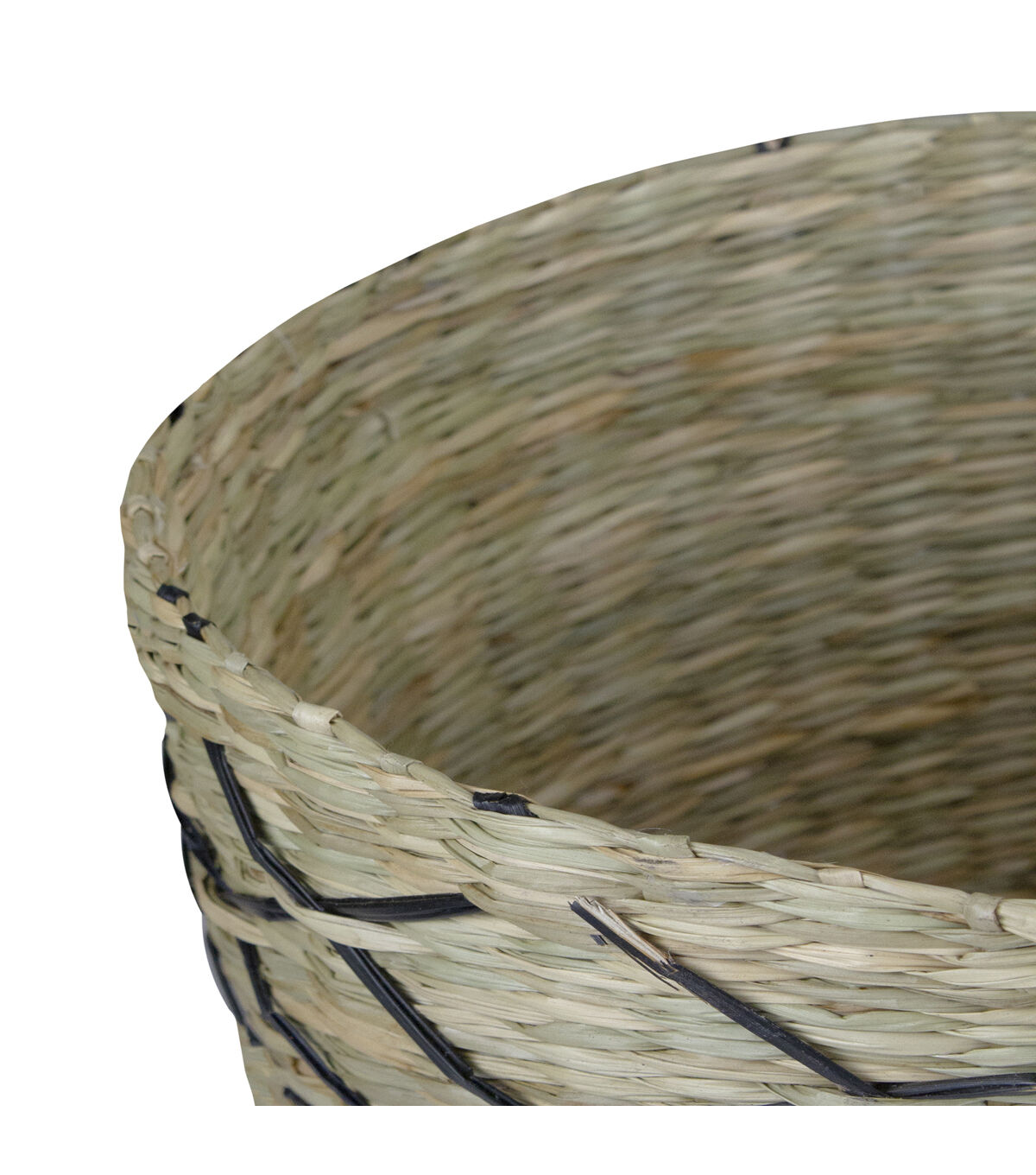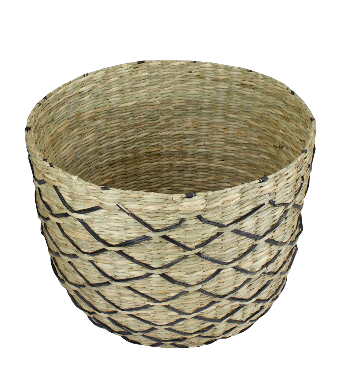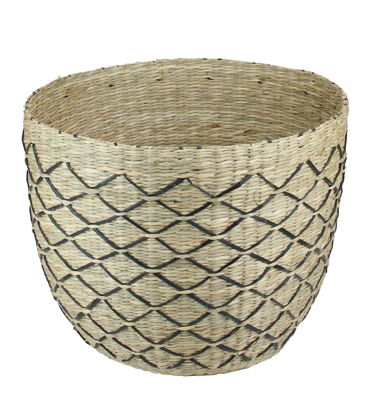 Here is something exciting for those who want their outdoors as pleasant as their indoors. Bring in nature's best attributes within your home with this seagrass basket with black and brown lattice print. It is an exceptional element of style and sophistication. Features: Features beautiful hand woven black lattice print design Sturdy flat bottom Can hold various items Recommended for indoor use only Dimensions: 10" high x 12" diameter (at the top) base diameter is 7" Material(s): seagrass
