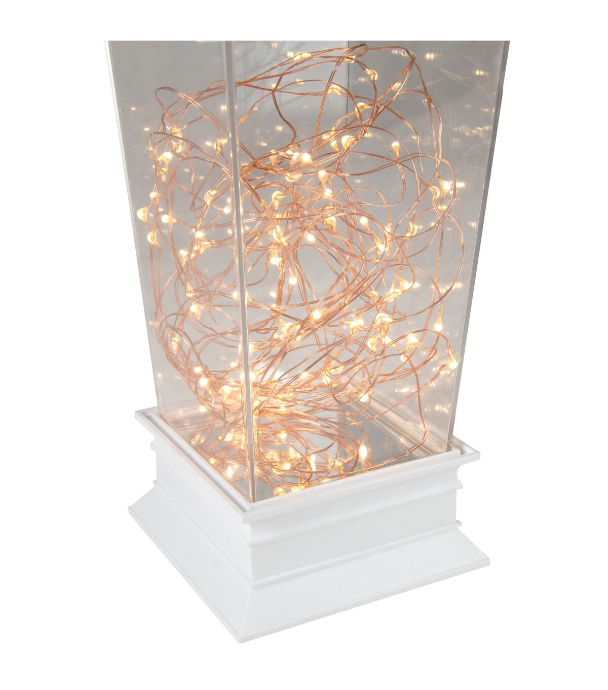 Give your home some elegance and sparkle with this beautiful tabletop decoration. It features a white lantern with a tapered base and lit with clear micro rice lights in the center. Great idea for weddings summer parties holiday dinners and much more.