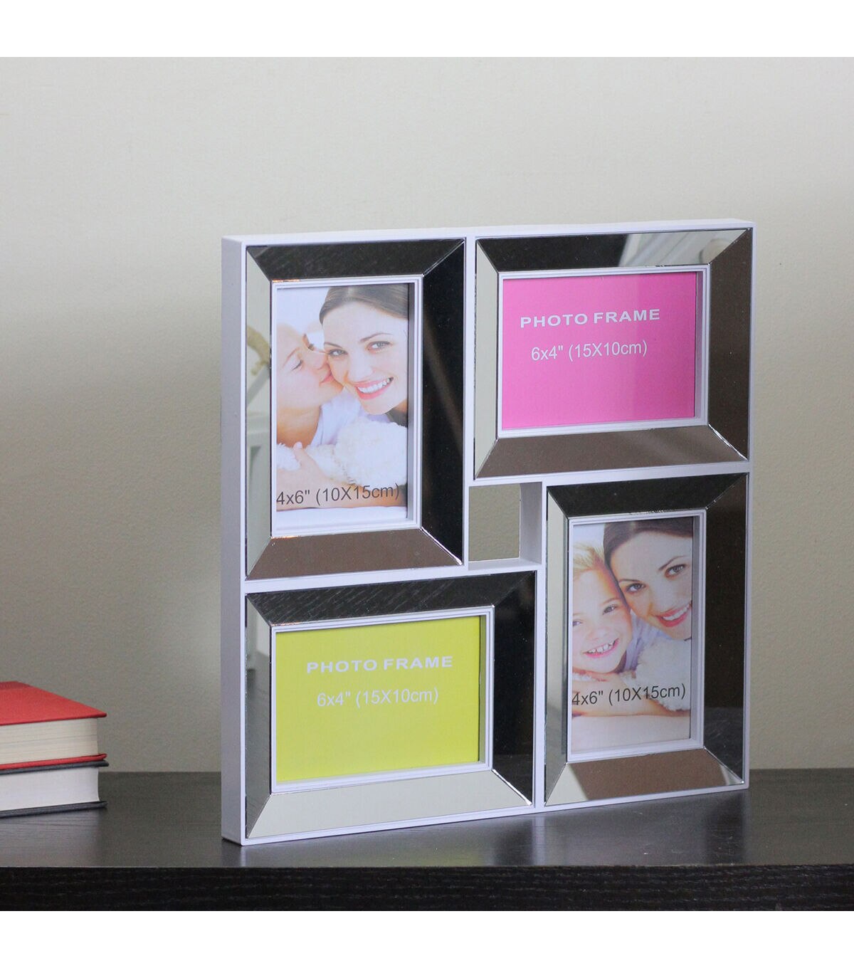 Liven up any space in your home with this photo frame. This photo frame meets your necessities and will make your pictures come alive. This stunning collage frame would be a perfect addition to any room in your home! Product Features: Silver glass encased photo frame Square Frame can hold 2 - 4" x 6" and 2 - 6" x 4" photos Includes hanging hardware Recommended for indoor use only Dimensions: 14.25"H x 14"W x 1.25"D Material(s): plastic/glass