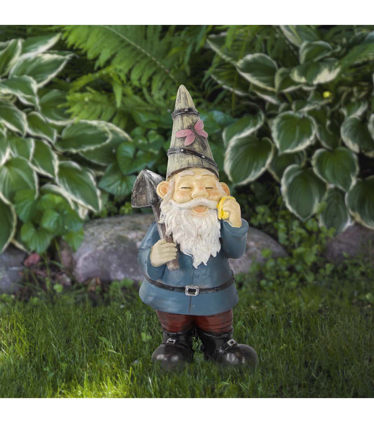 Gnome with shovel garden statue