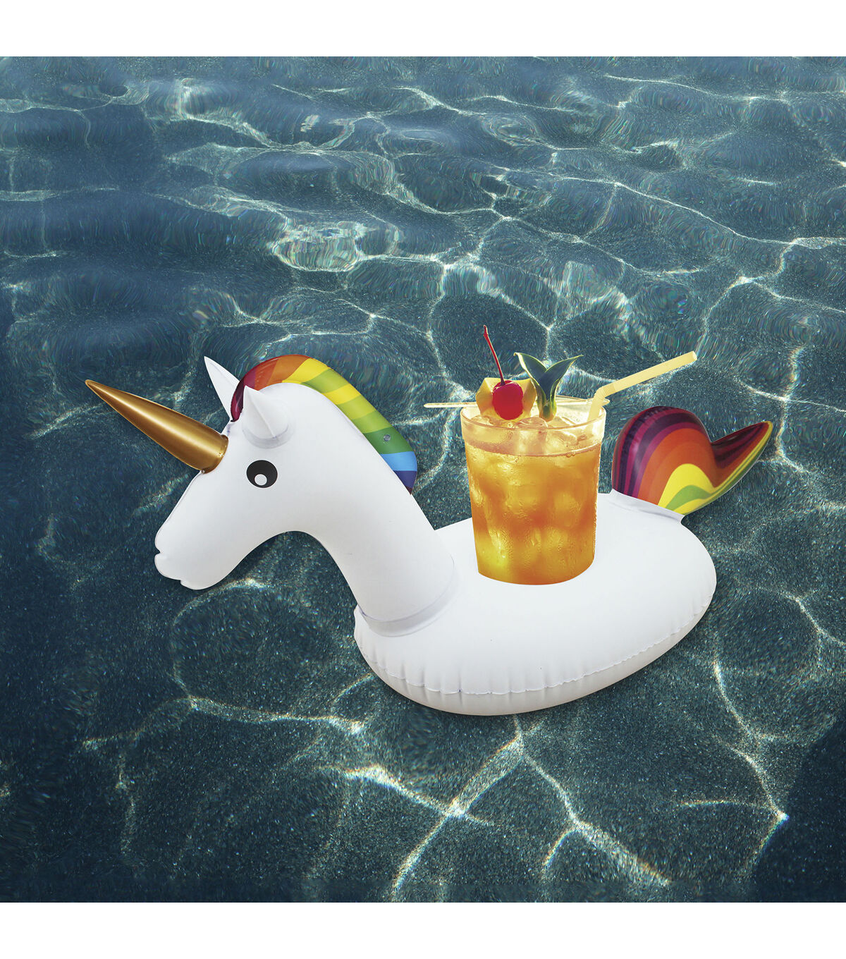 This unicorn shaped drink holder is so convenient while you swim your guests will love it. The hole in the center keeps your drink afloat while you're in the pool or hot tub. Inflates fast and is easy to clean. Great for pool parties and more!