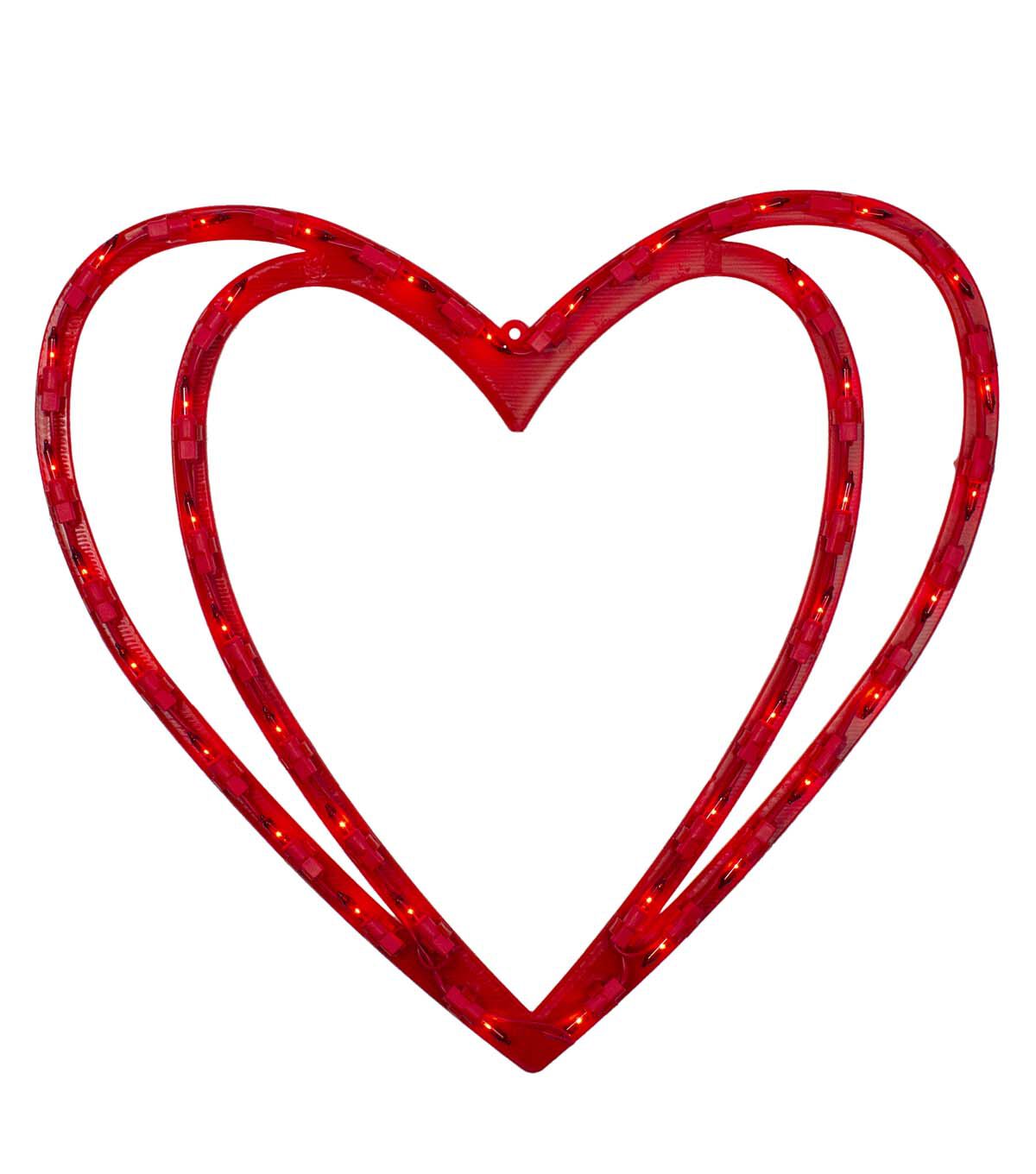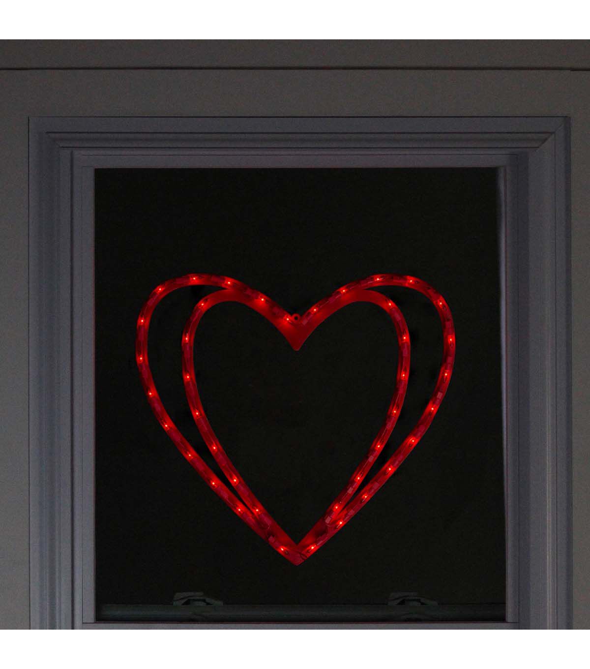 Add a festive touch to your holiday decor with Northlight's 17" Valentine's Day Red Pre Lit Scarlet Double Heart. This window silhouette is an easy way to impress your friends and family both inside and outside of your home. The heart features scarlet lights in both the inner and outer hearts, making it the perfect way to add a romantic ambiance to your Valentine's Day celebration.