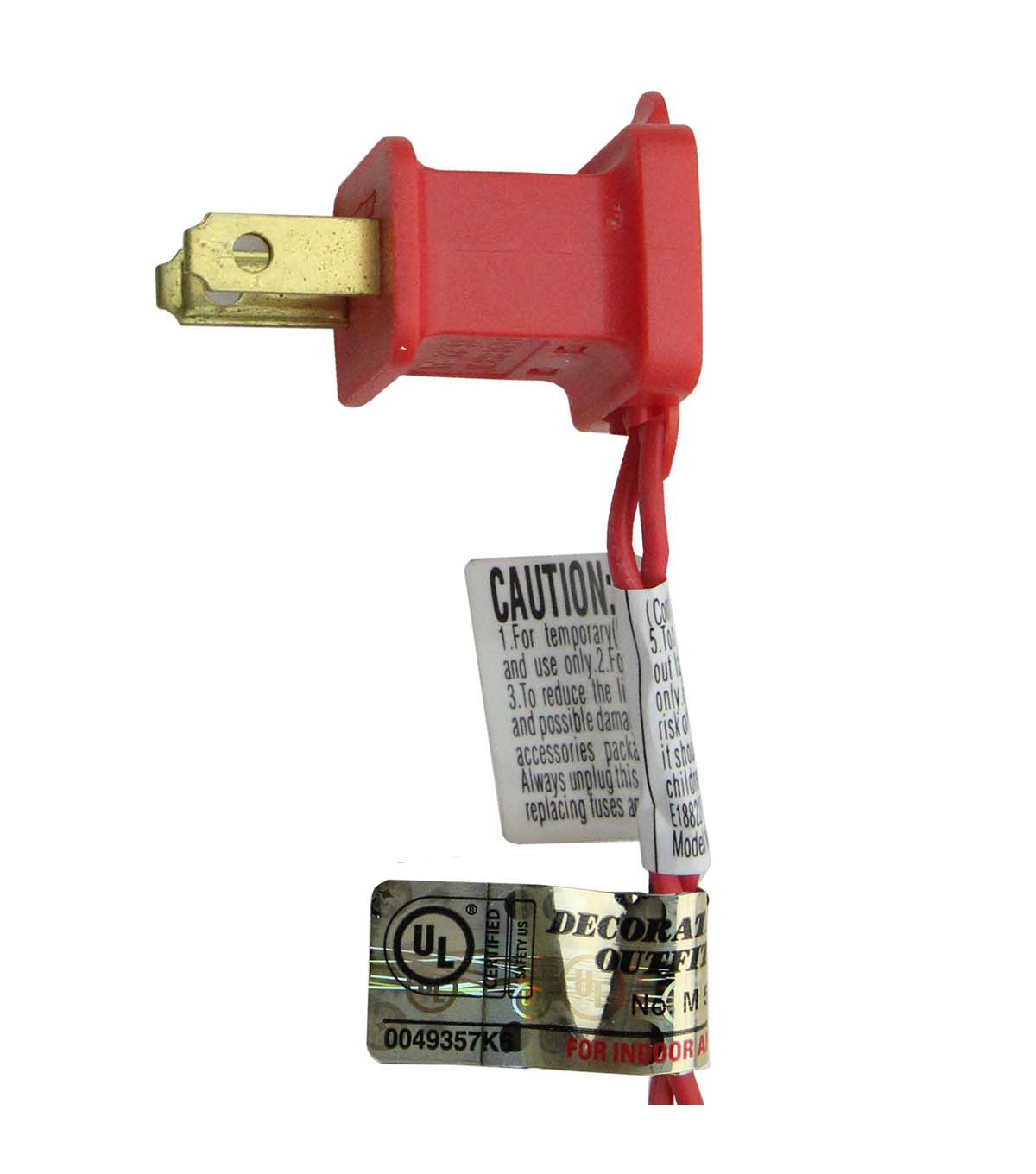 With 40 mini bulbs and a 25" red lead cord, this window silhouette is UL certified and approved for indoor use only. If one bulb burns out, the rest will stay lit, and it comes with replacement bulbs and spare fuses. Additionally, it contains 1 plug with an end connector which allows you to stack multiple lighted items together (not to exceed 210 watts). The wire gauge is 22, and it operates on 120 volts, 60 hertz, 0.14 amps, and 16.8 watts.
