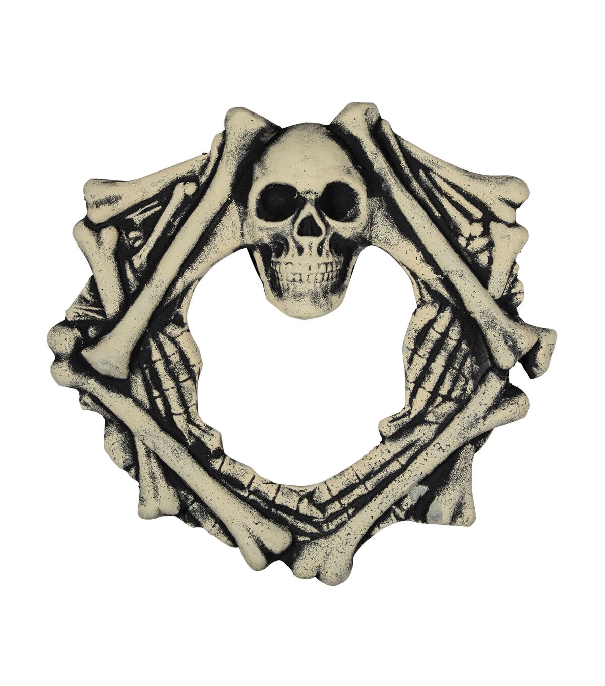 This horrifying skeleton wreath is the perfect addition to your Halloween decor. A spooky skeleton is twisted into a wreath shape. Ideal for doors walls or as part of your terrifying holiday table centerpiece.