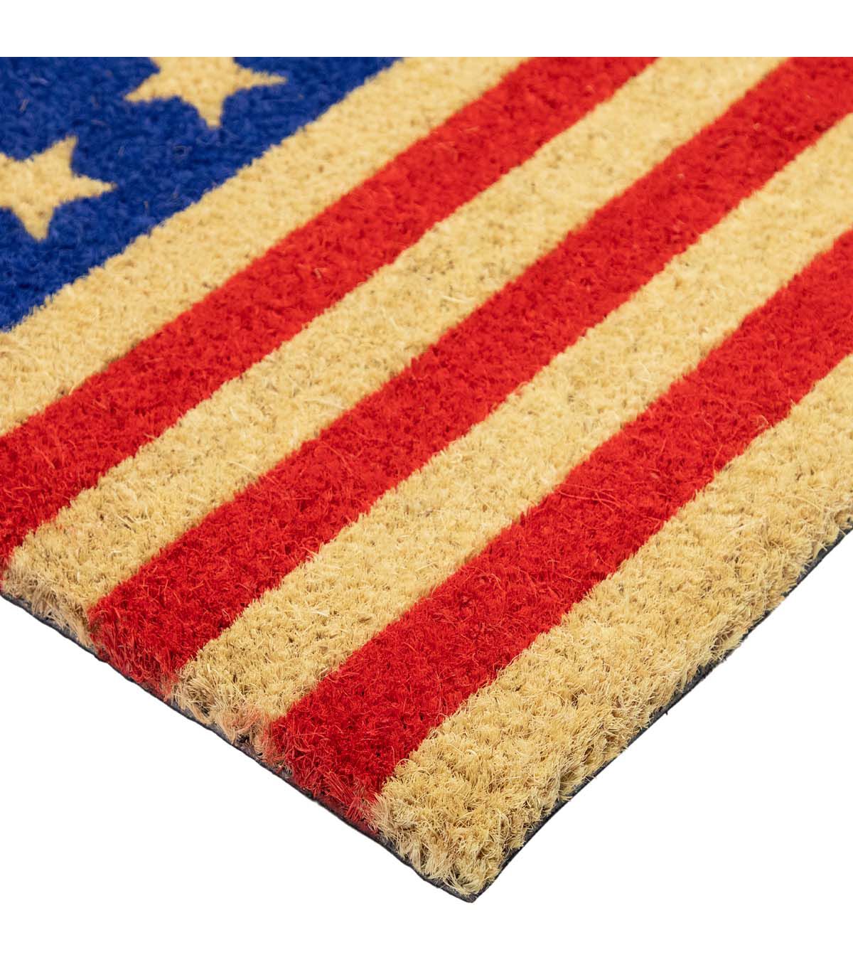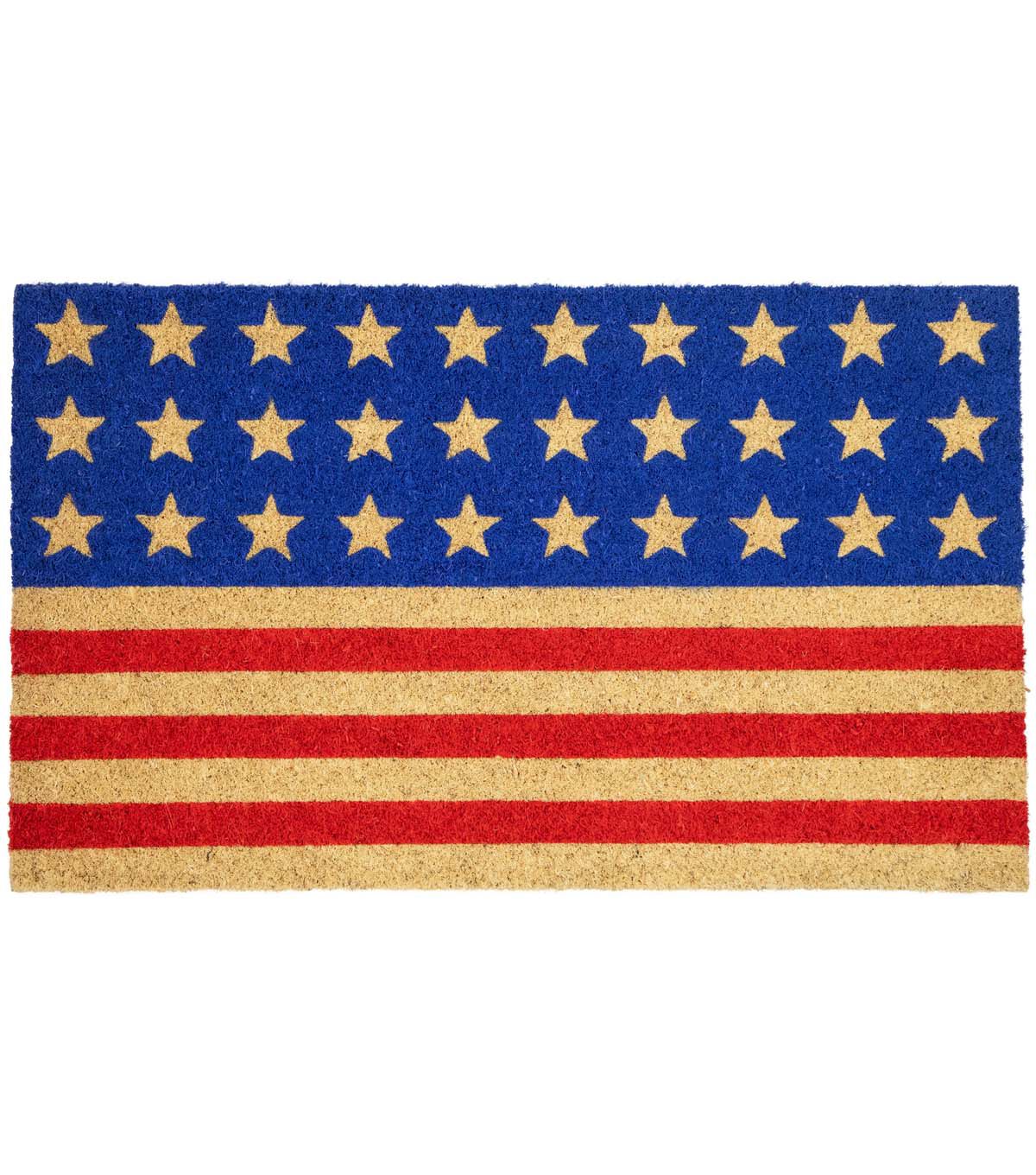 Blue and Red Americana Stars and Stripes Coir Outdoor Doormat 18" x 30"