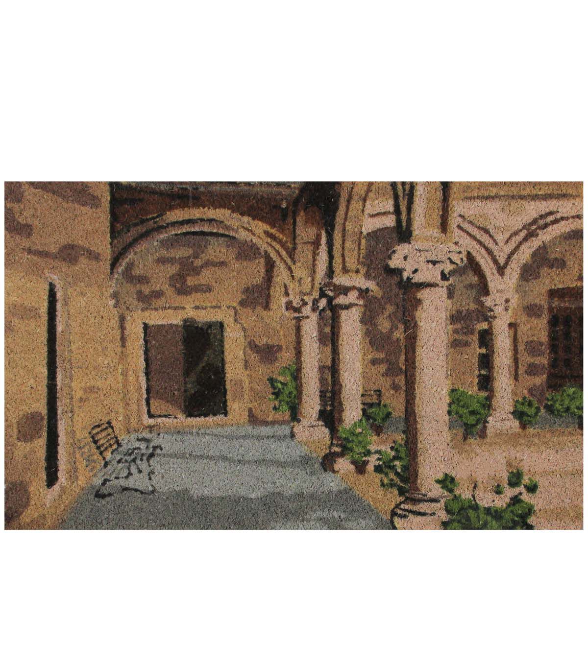 Welcome guests with this decorative doormat! This mat displays an Italian patio design with tall columns and a bench while making the style just right on with your outdoor decor. You can add it to your front or back door could also be given as a gift for that special person on your gift list this year!