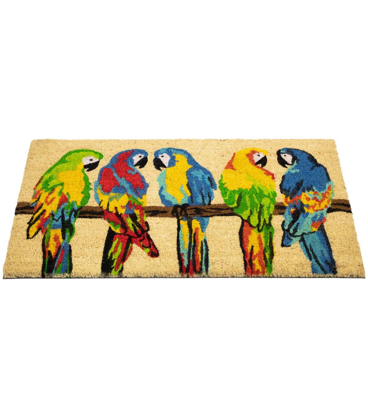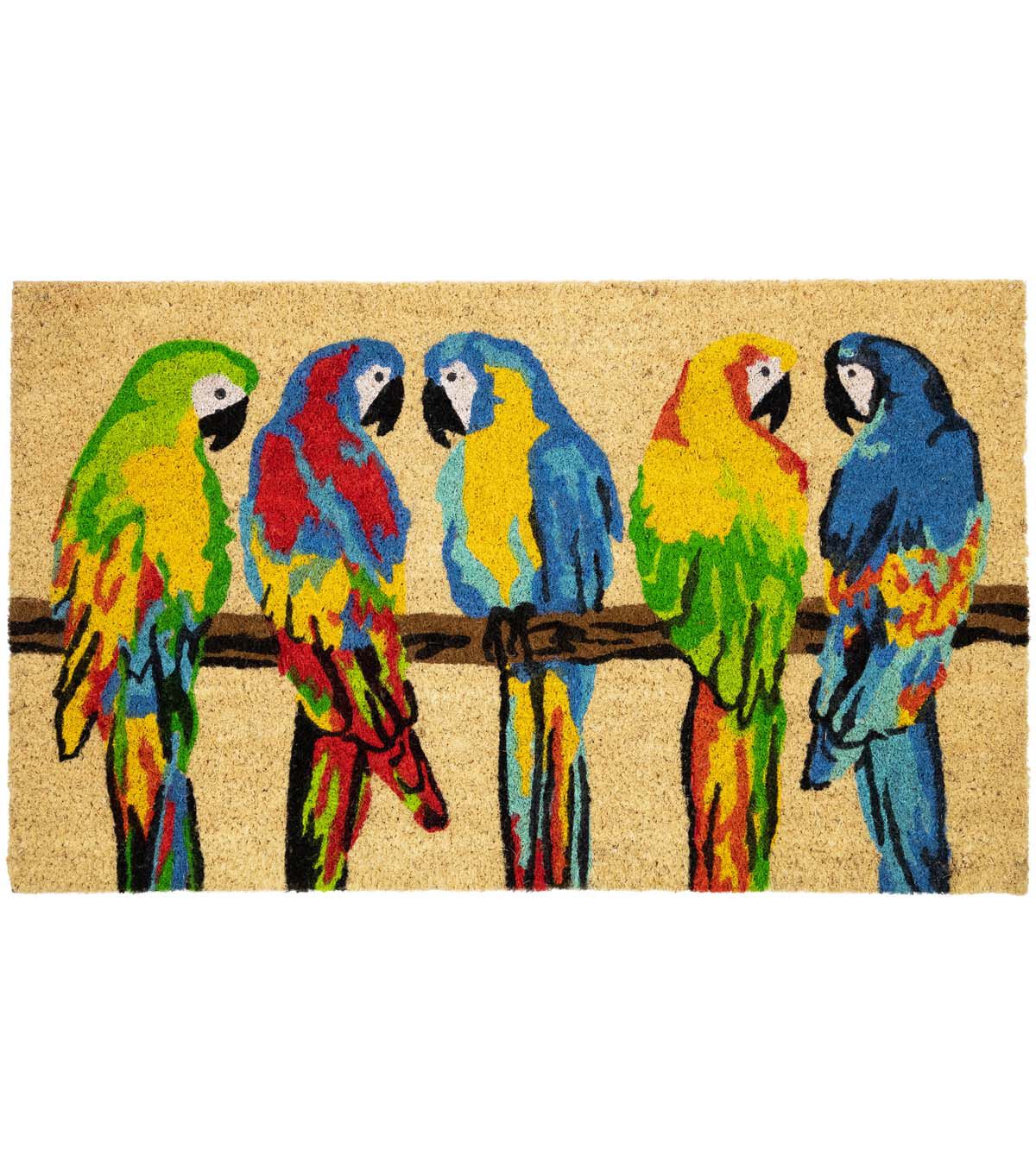 Toffee and Multicolor Parrots Coir Outdoor Doormat 18" x 30"