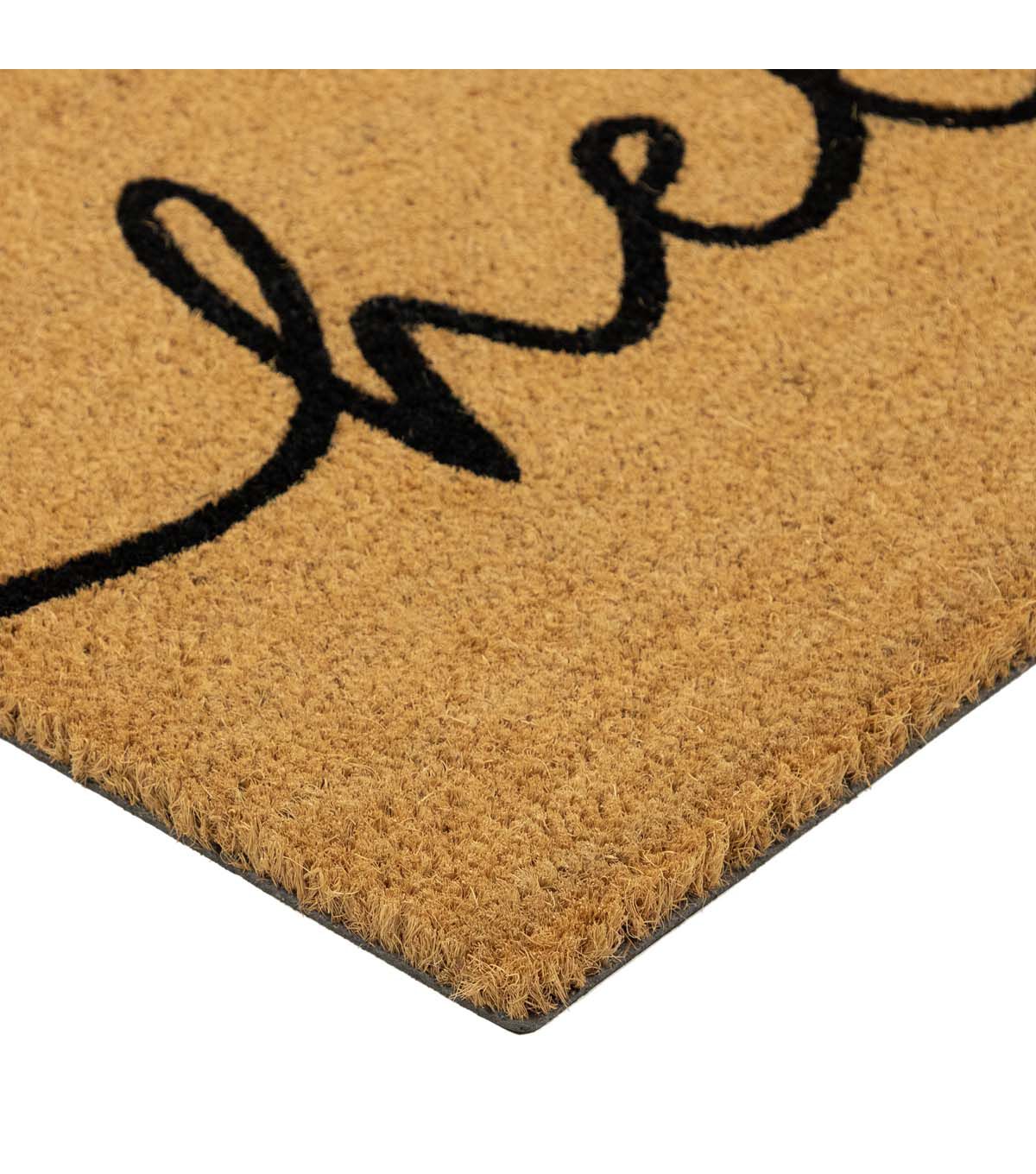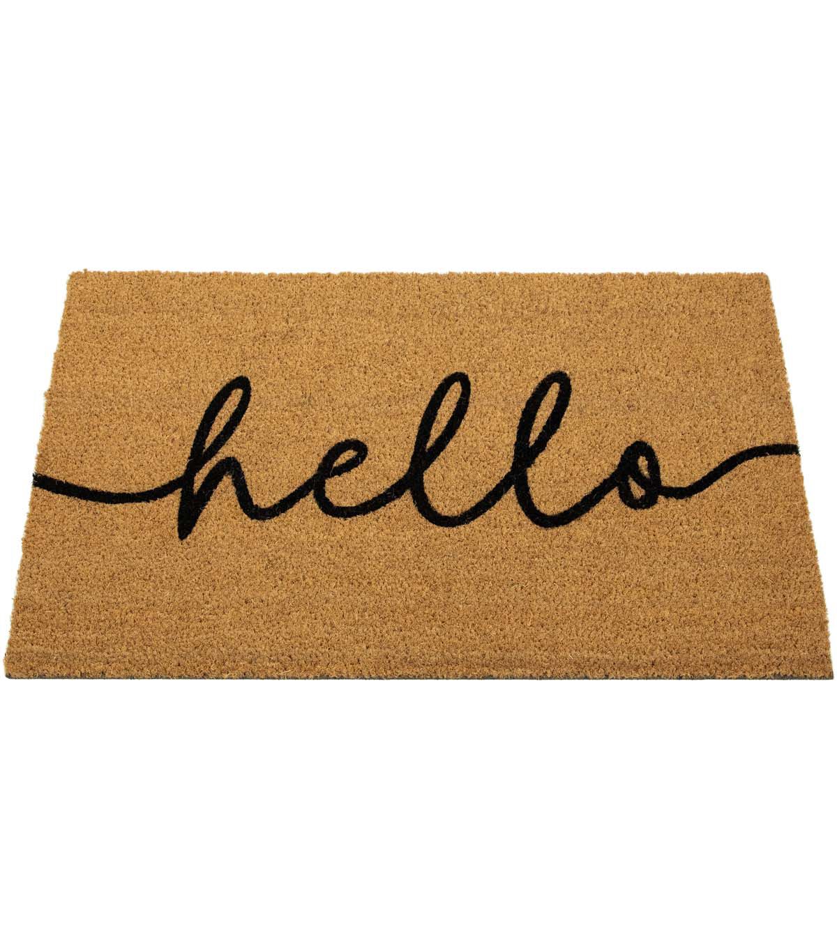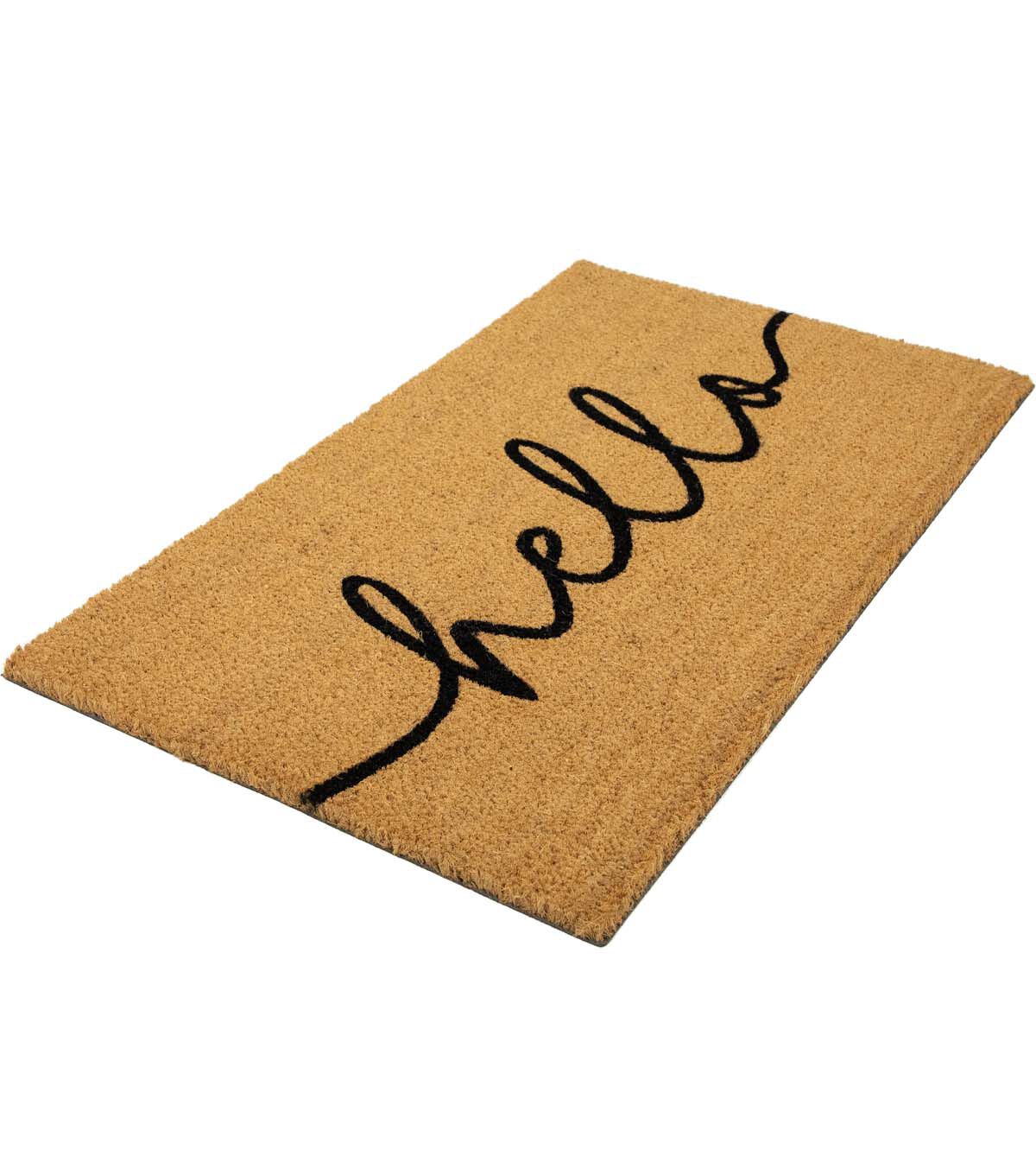 Make a warm and inviting statement to your home with this "hello" doormat. With its sturdy construction and non-slip backing this doormat stays securely in place even in high traffic areas. The thick and durable coir fibers are perfect for trapping in dirt and moisture from shoes. Whether it's placed at the front door back door or patio entrance this doormat is a functional and decorative addition to any home.