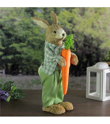 19" Spring Sisal Standing Bunny Rabbit Figure with Carrot