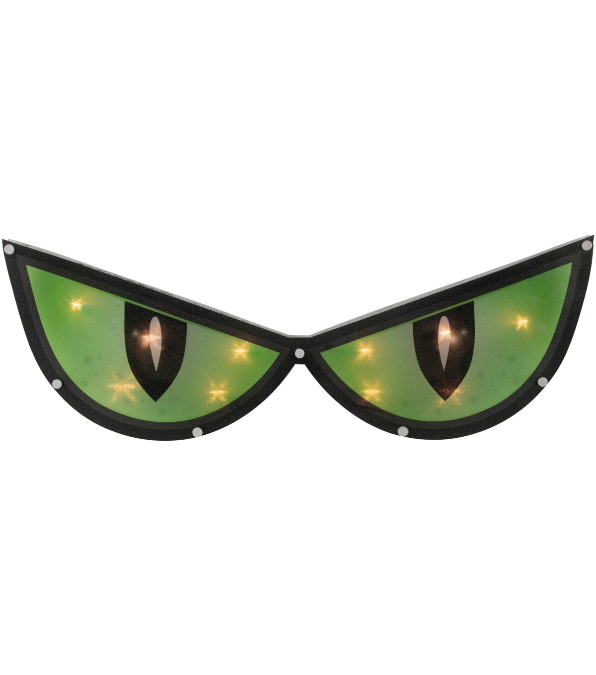 Get ready to spook your neighbors and trick-or-treaters with the Halloween window silhouette. This eerie decoration features two bright green glowing eyes that are sure to catch everyone's attention. The eyes appear to be peering out from the darkness giving the impression that someone or something is watching from inside your home. Whether you're hosting a Halloween party or just looking to add some creepy ambiance to your home this lighted decoration is sure to impress.
