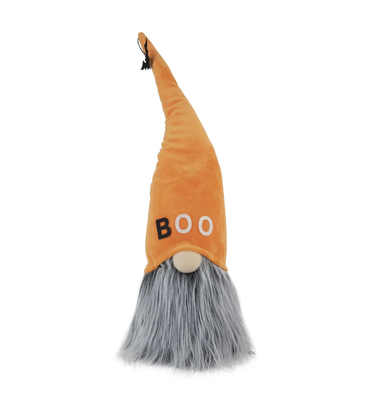 Get ready to add some spooktacular charm to your Halloween decor with this adorable Halloween Gnome! With its vibrant orange hat and gray color scheme and playful "Boo" message this standing gnome will add a whimsical touch to any space. Its fuzzy beard hair and pointy hat will add a touch of mischief to your Halloween display. Whether you place it on your mantel bookshelf or table this gnome is sure to delight trick-or-treaters and party guests alike.