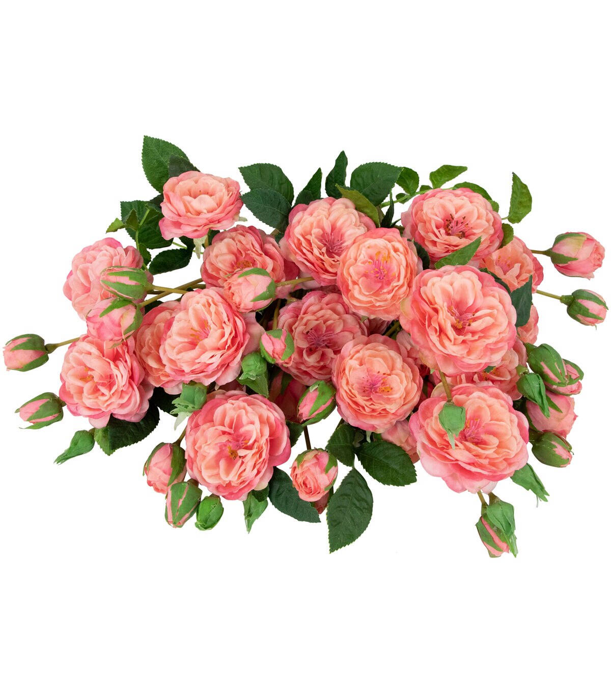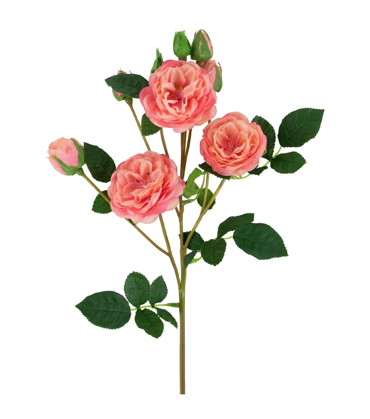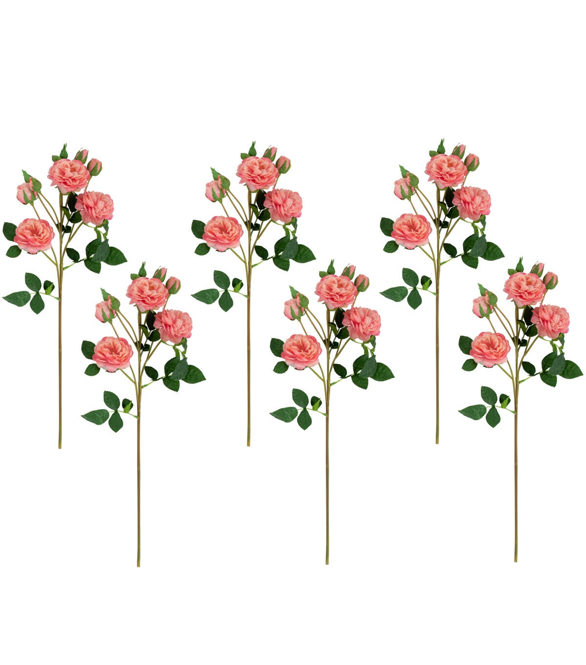Camellia roses also know as a winter's rose are a miniature shrub that are perfect for small spaces. The floral sprays come with multiple flower buds mixed with fully bloomed flowers. These pink lifelike faux flowers are the perfect addition to your favorite floral arrangement. The realistic stems and leaves add that perfect pop of green dimension. Display these roses in your favorite vase add them to your next craft or create the perfect centerpiece.