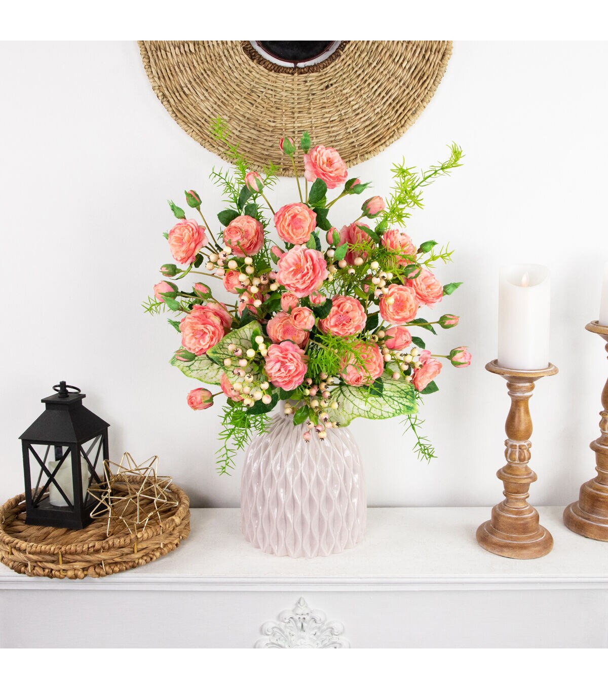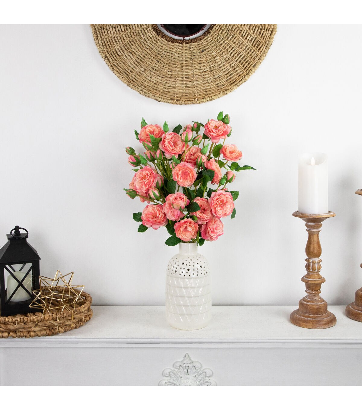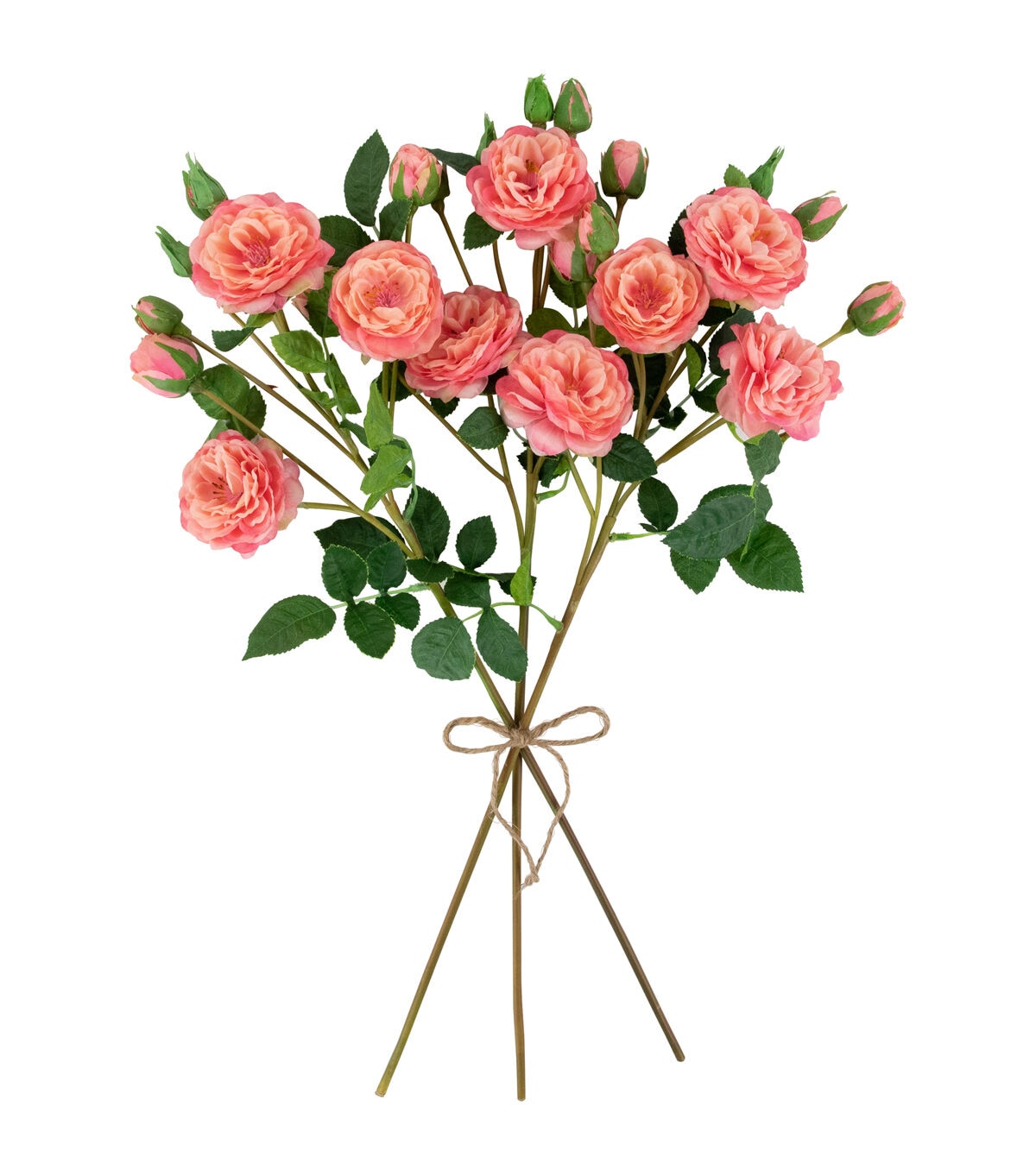 Camellia roses also know as a winter's rose are a miniature shrub that are perfect for small spaces. The floral sprays come with multiple flower buds mixed with fully bloomed flowers. These pink lifelike faux flowers are the perfect addition to your favorite floral arrangement. The realistic stems and leaves add that perfect pop of green dimension. Display these roses in your favorite vase add them to your next craft or create the perfect centerpiece.