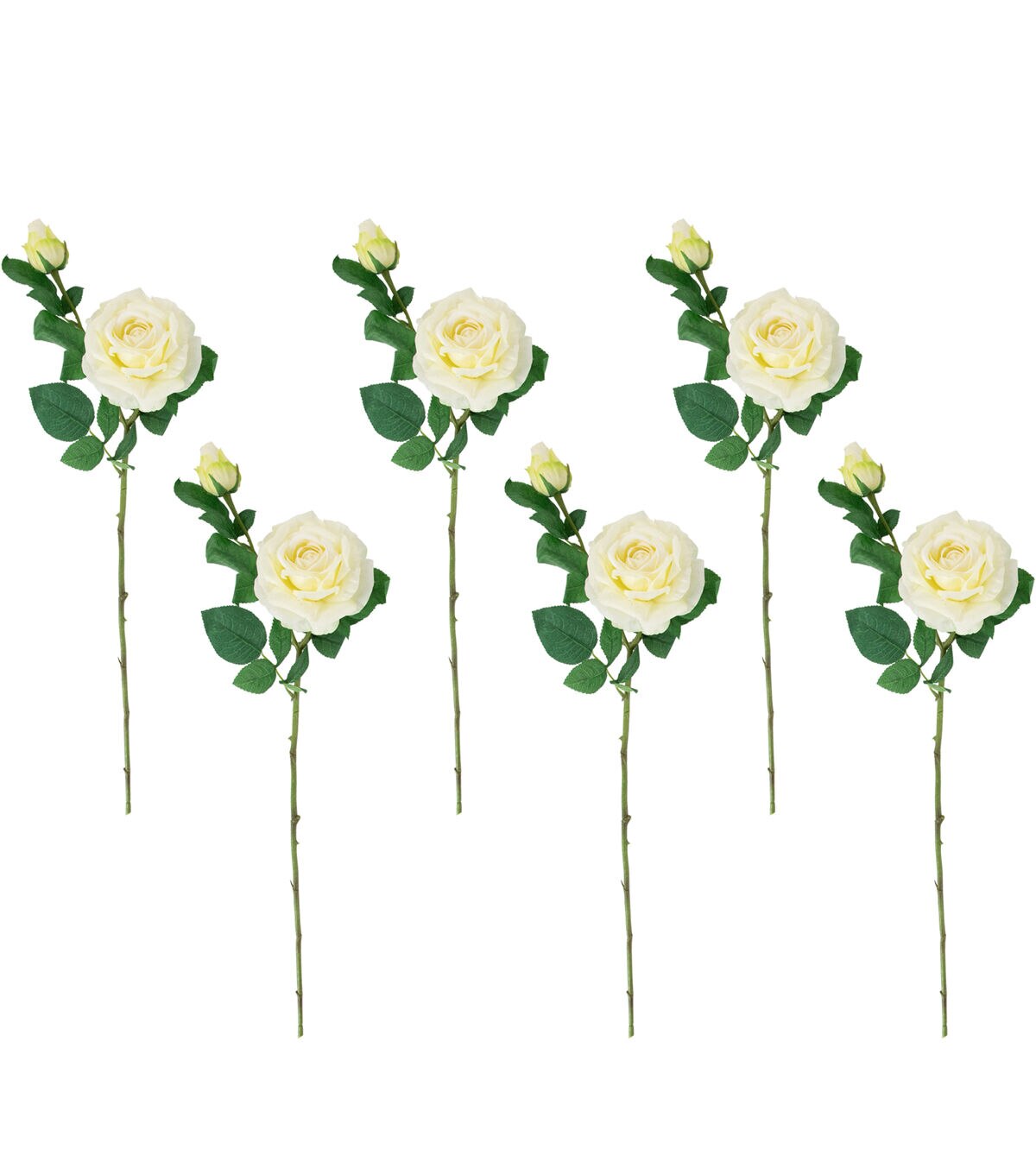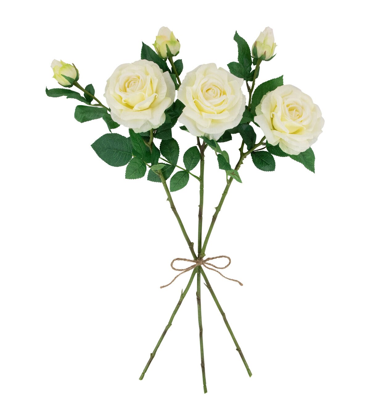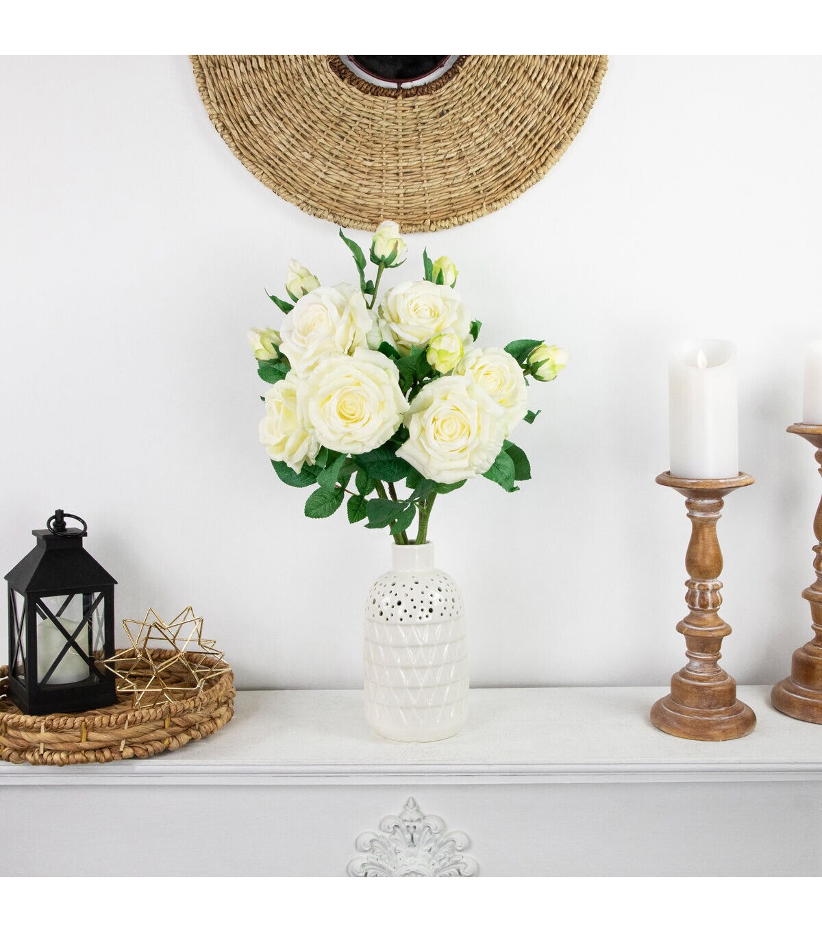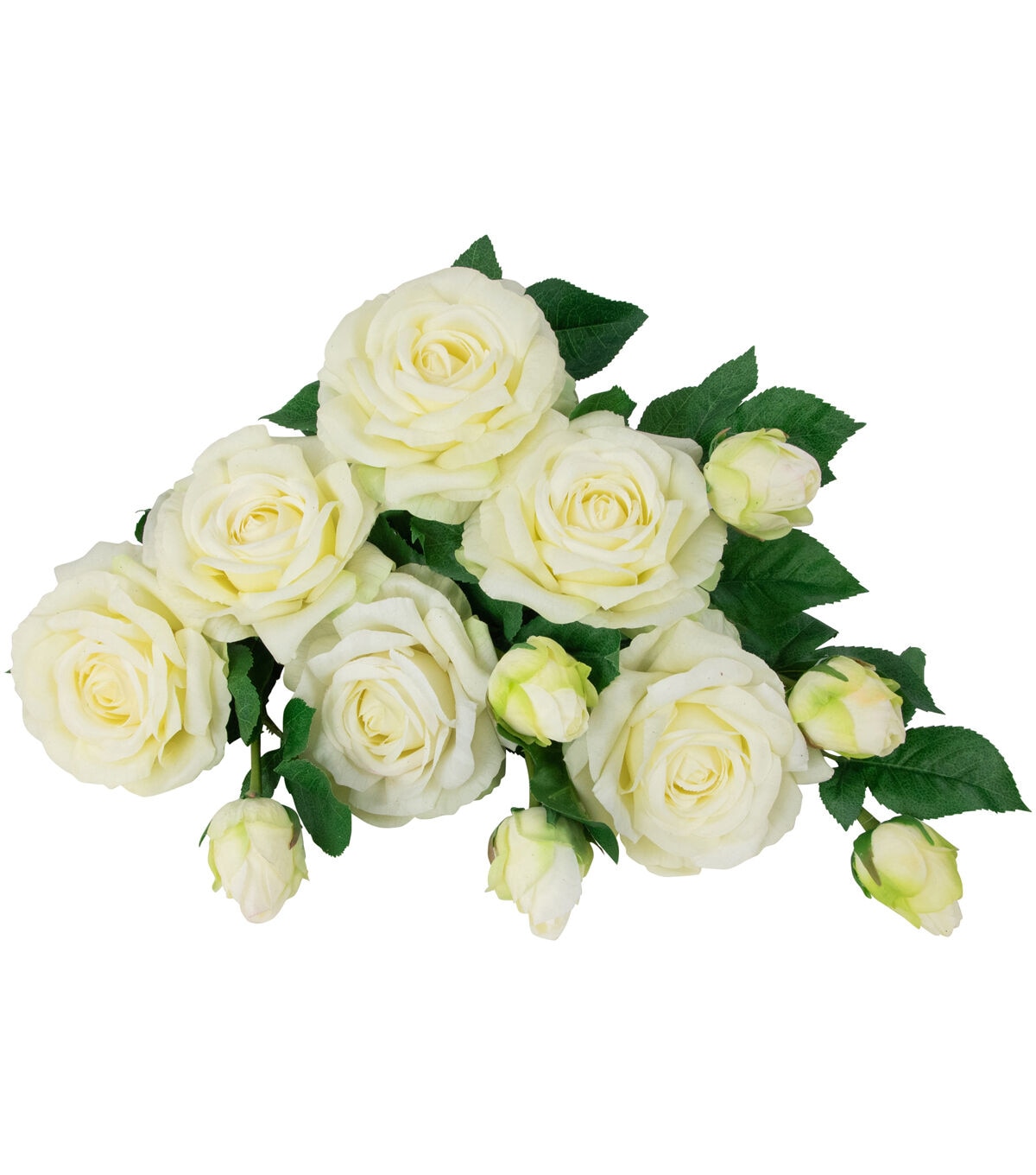 Create a classic and timeless wedding centerpiece or bouquet with these white rose stems. The real touch feature makes these faux flowers feel freshly cut from the garden. Each stem contains a fully bloomed and budding flower. The lifelike leaves and stem provide the perfect touch of depth and color to your display. These remarkable flowers are perfect alone in a vase or as an added dimension to your favorite floral arrangement.