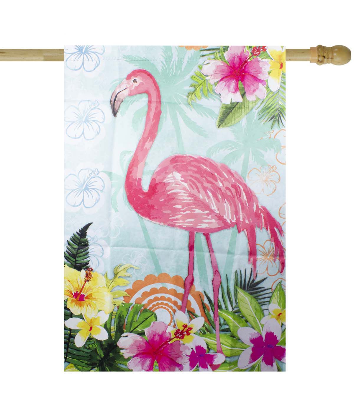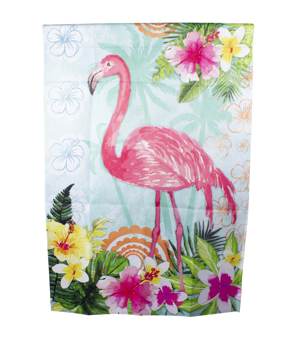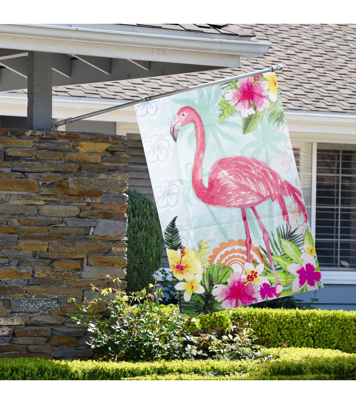 Bring the tropics to your garden this season with this beautiful flag. Decorated with a lovely floral scene and an elegant flamingo. Perfect addition to your spring outdoor decor!