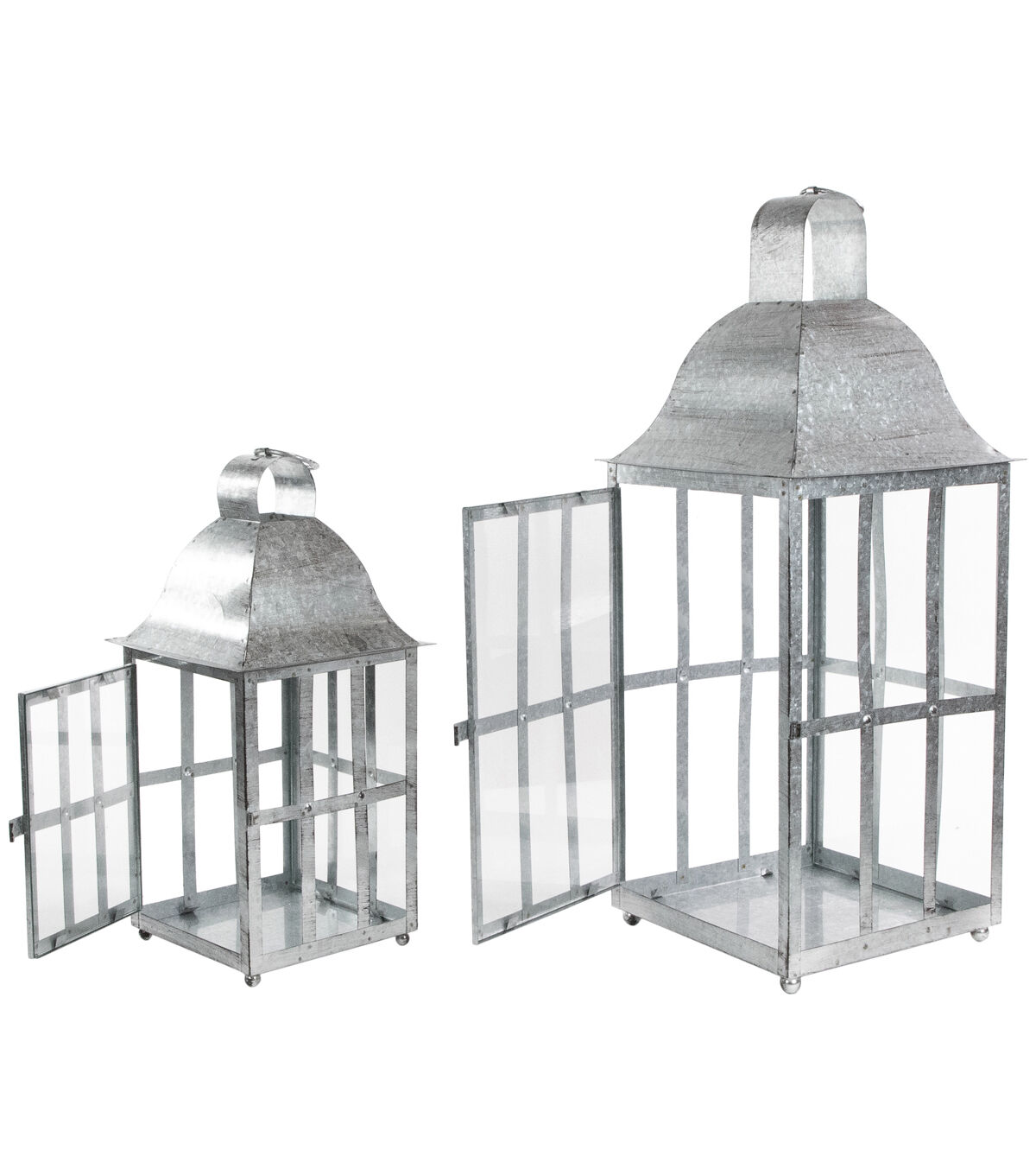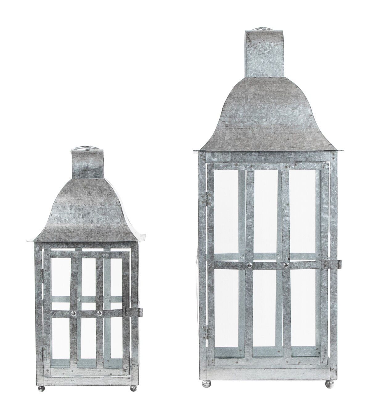 Set of 2 distressed galvanized metal candle lanterns