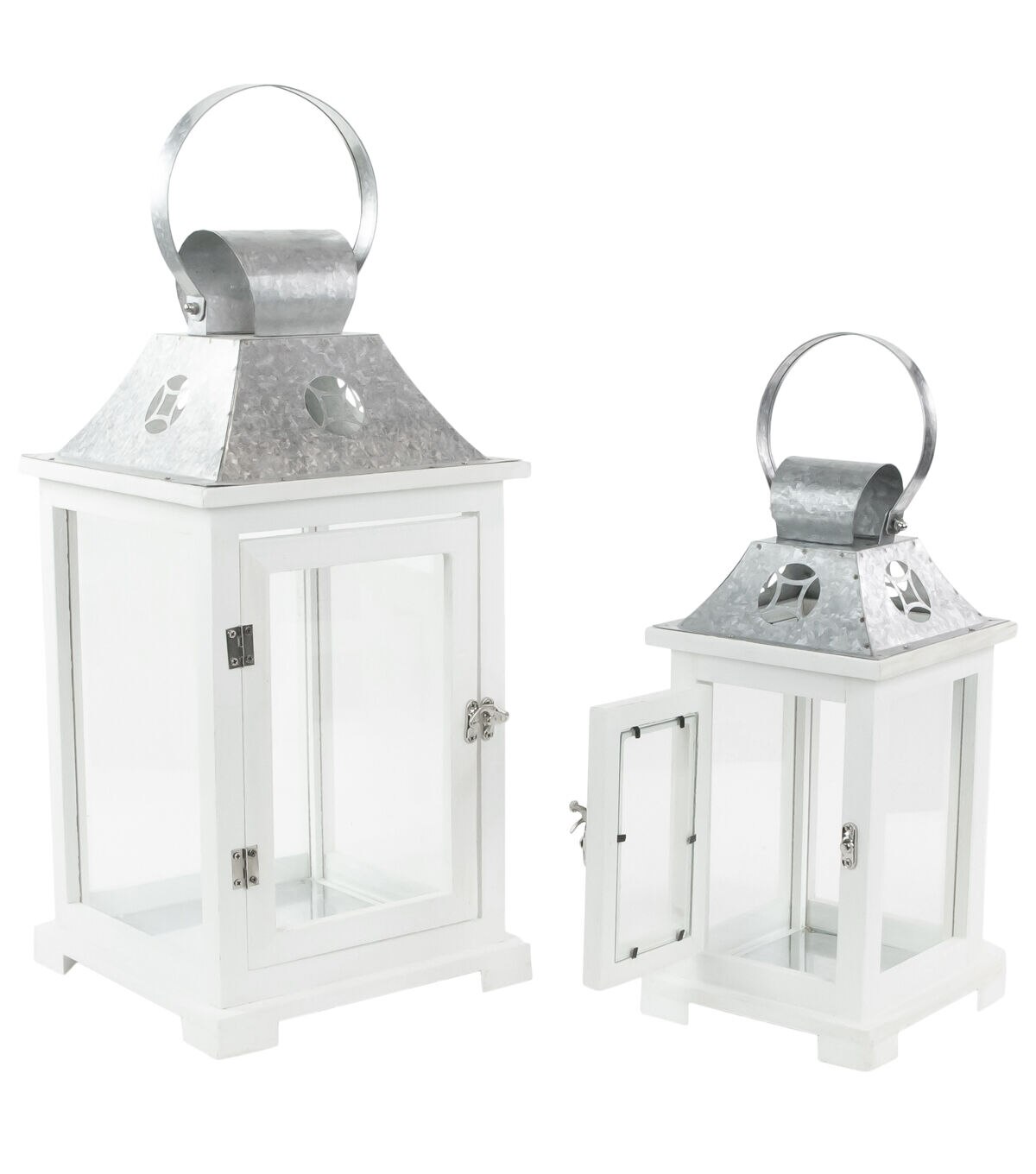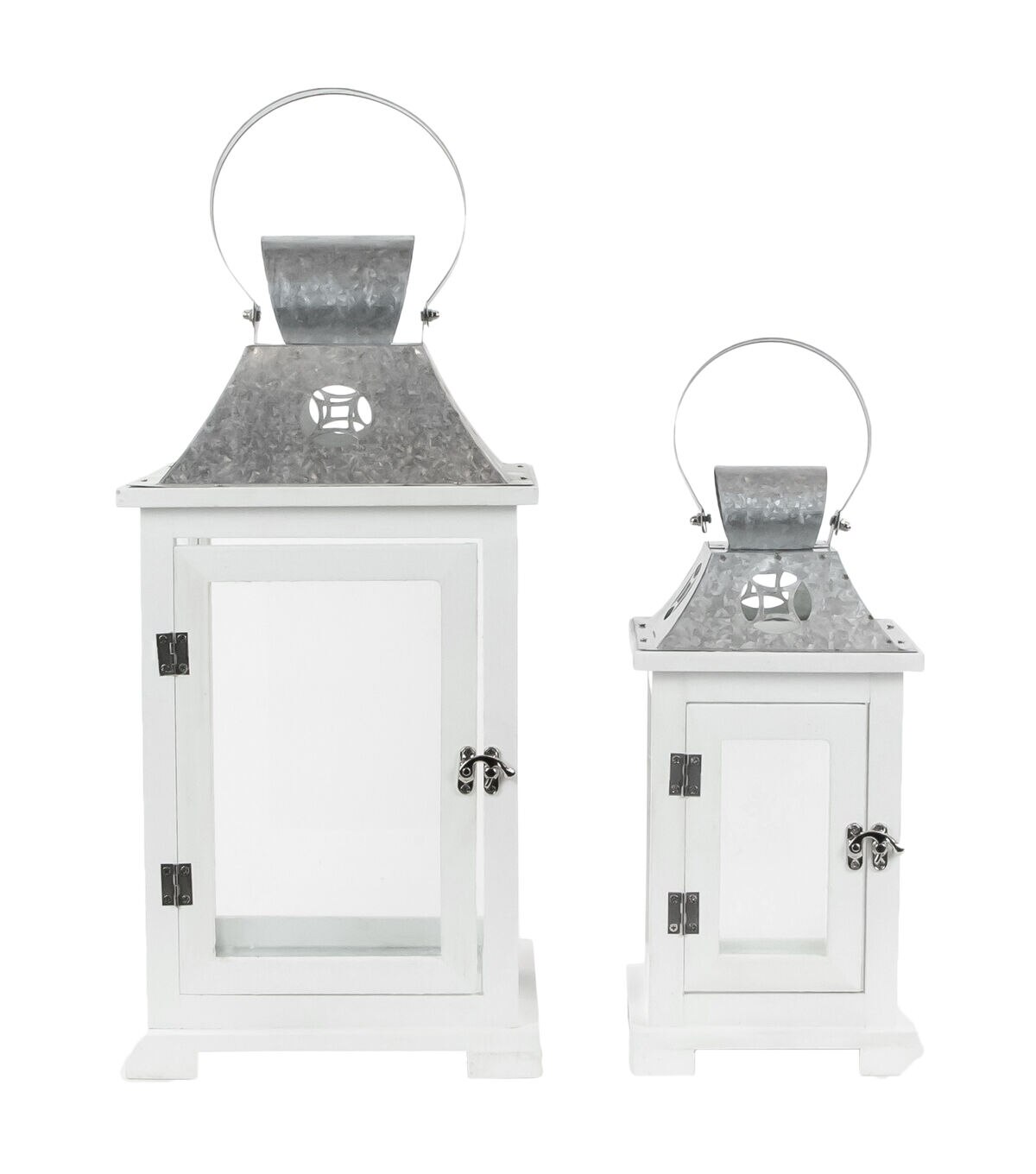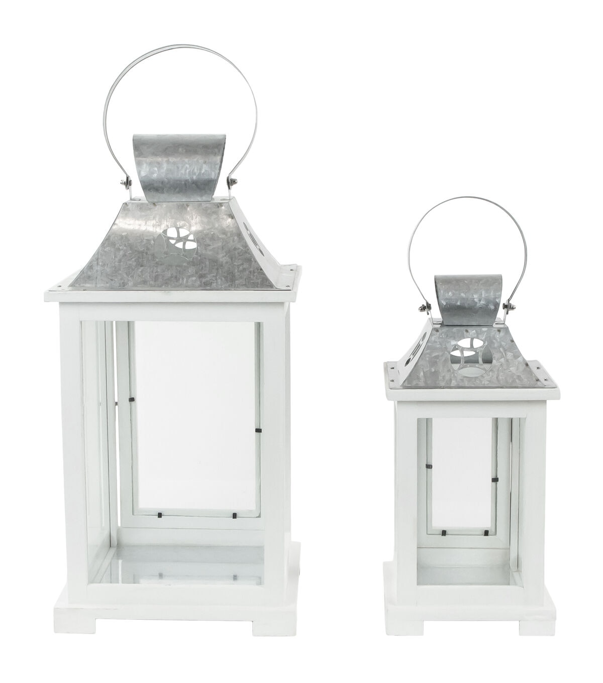 Lanterns accent any decor style from traditional to contemporary. Place a candle inside to create a cozy atmosphere. The perfect addition to bookshelves mantle places porches or tables. The ring at the top can be used to hang the lantern. The sleek metal wood and glass are a great way to add a timeless chic touch to your living space or a unique touch to holiday decor.