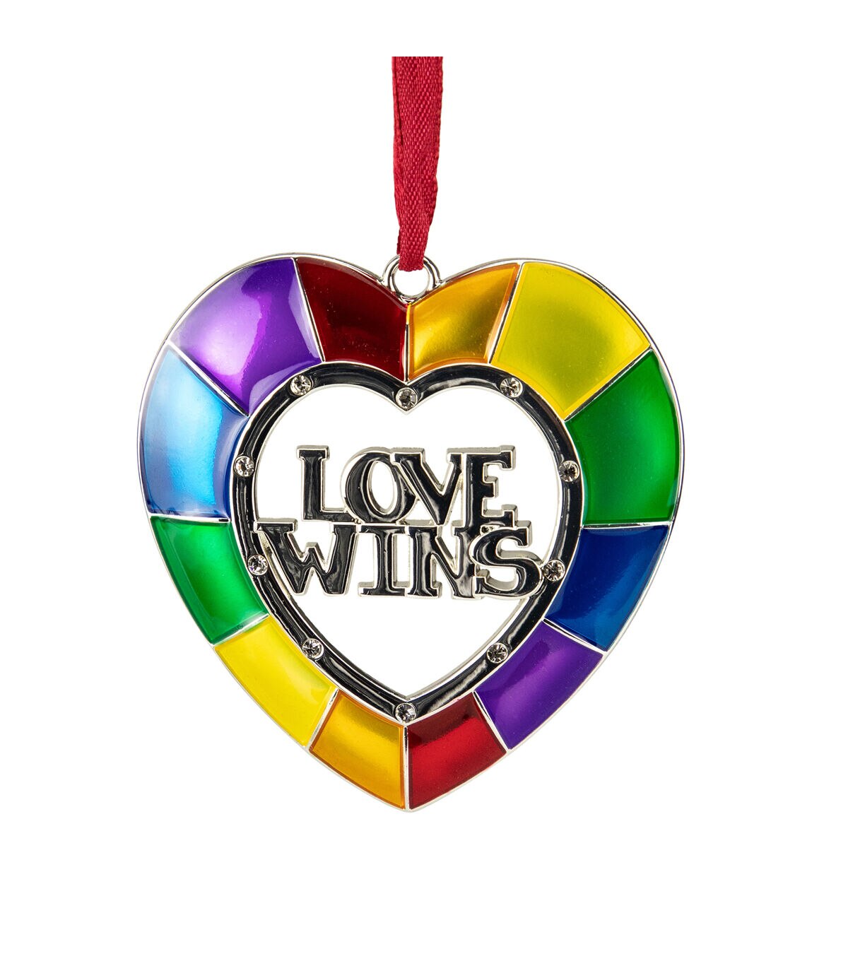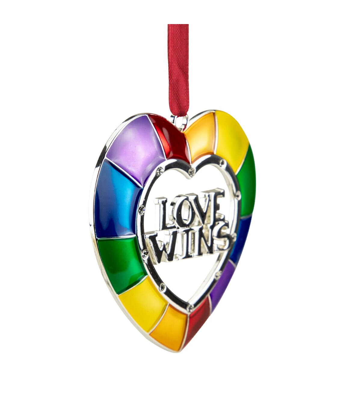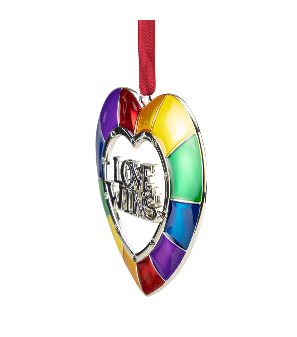 - Love Wins PRIDE faceted heart silver-plated ornament