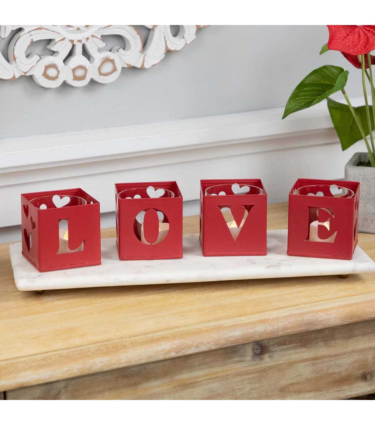 Spread Love and Joy with Northlight's Valentine's Day Red Metal Love Blocks Candle Holders 4pk