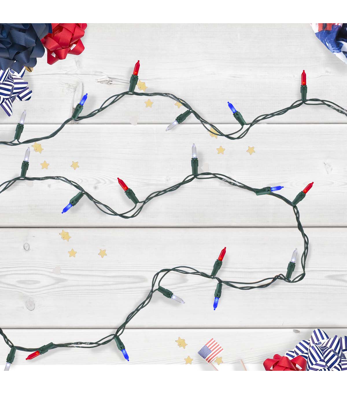 Display your patriotism this 4th of July with our eco-friendly LED lights. LED's use 90% less energy than your standard incandescent lights making them last longer and more cost-efficient. Also perfect for Memorial Day decorating.
