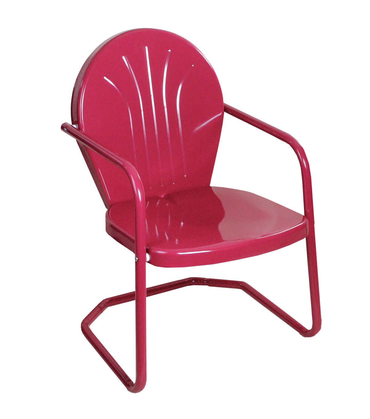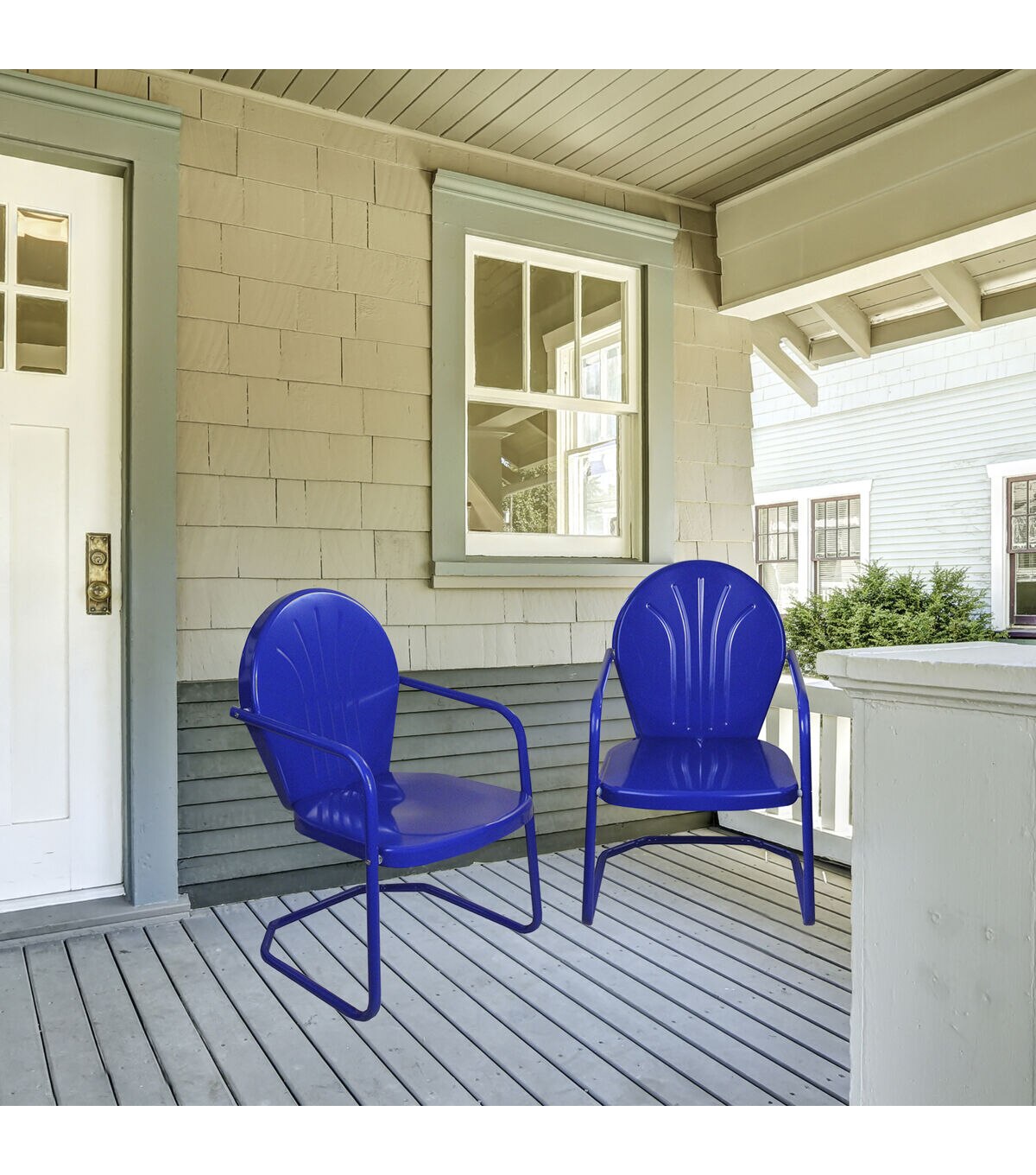 With their fun vibrant colors and durable design it is no surprise that tulip lawn chairs have remained a popular patio staple for over half a century. Powder-coated finish protects against corrosion and helps keep the color from fading for many years of enjoyment. Coordinate with similarly colored tables and chairs for a matching set or mix and match colors to create a set that is perfectly you. Features: Color: blue Long-lasting enamel paint Powder-coated finish 350-pound weight limit Comes with white caps 5-piece easy assembly All weather resistant For indoor or outdoor use Overall product dimensions: 34"H x 23.5"W x 21"D Seat height: 16.5" Seat width: 19.5" Seat depth: 19" Seat back: 20.5" high x 19.5" wide Armrest height: 24.25" Material(s): steel/plastic