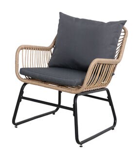 Our Santa Cruz Collection 3-piece patio chat set is perfect for creating a comfortable outdoor seating area without taking up a lot of space. With clean lines contrasted perfectly by its round edges our rattan chair is the ideal modern accessory for your outdoor space. The black powder-coated steel frame provides a sturdy base that allows for enjoyment year after year. This beautifully handcrafted set spares no compromise between comfort and style with the included seat cushions. Set includes: 2 armchairs with cushions 1 side table Product features: Rust-proof powder-coated black steel frame Handwoven rattan 0.25" clear tempered glass top on side table 1.5" thick gray seat cushions and 7" thick back cushions Cushions are water resistant Machine washable cushions - cold water hang to dry Some quick and easy assembly required with the included instructions All weather-resistant for indoor or outdoor use Weight capacity: 330lbs Dimensions: Chairs overall: 31.25"H x 25.25"W x 25.25"D Seats: 15.25"H x 18"W x 20.25"D Backs: 18"H x 24"W Arm rest: 23.25"H Side table: 18"H x 19.25"W x 19.25"D Glass top: 0.25"H x 19.25"W x 19.25"D Material(s): rattan/steel frame/polyester cushions/glass