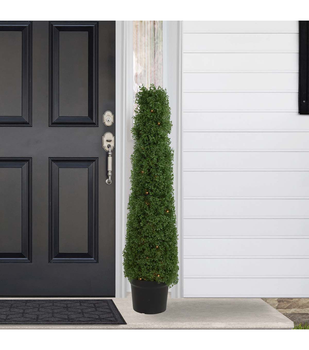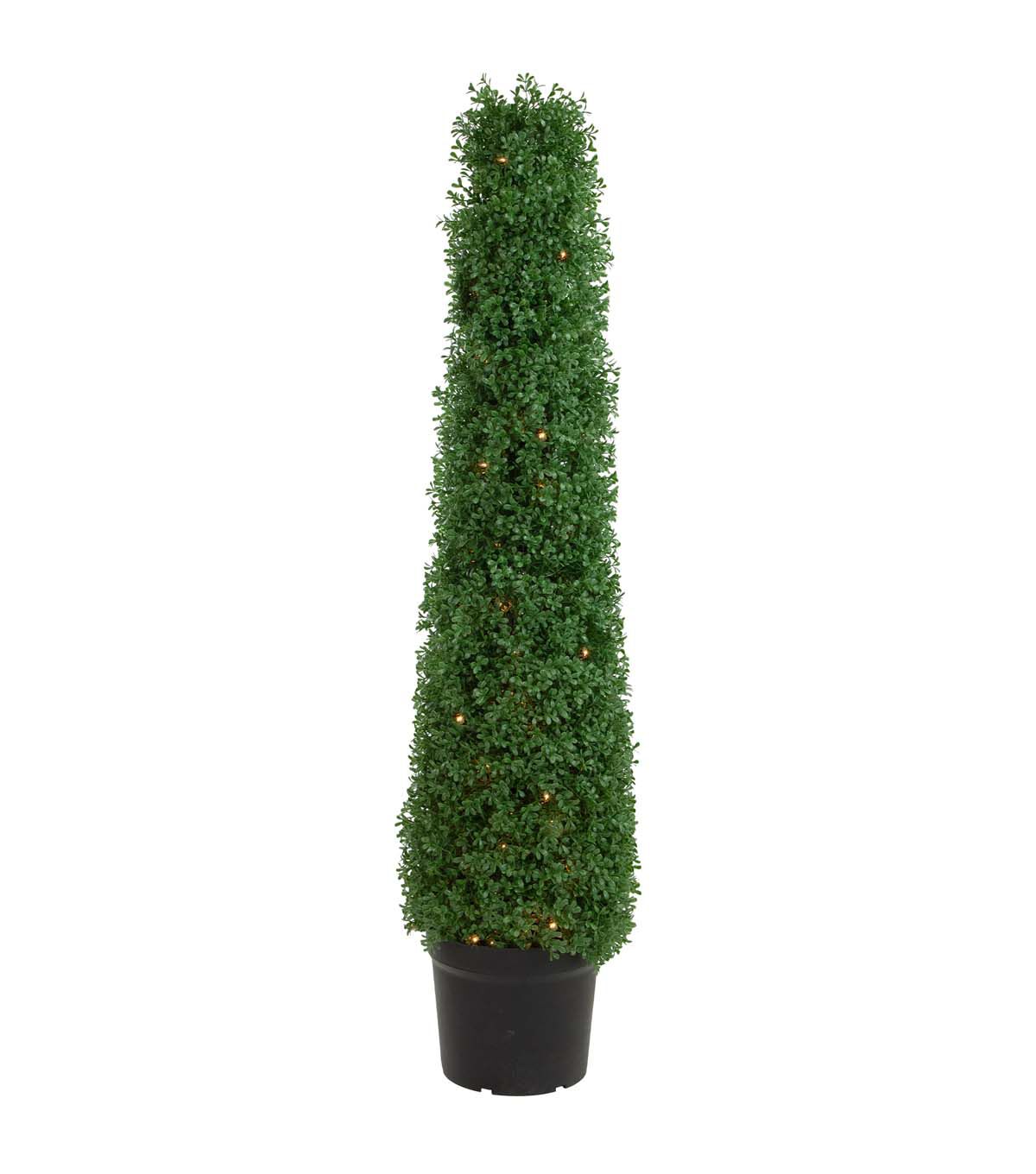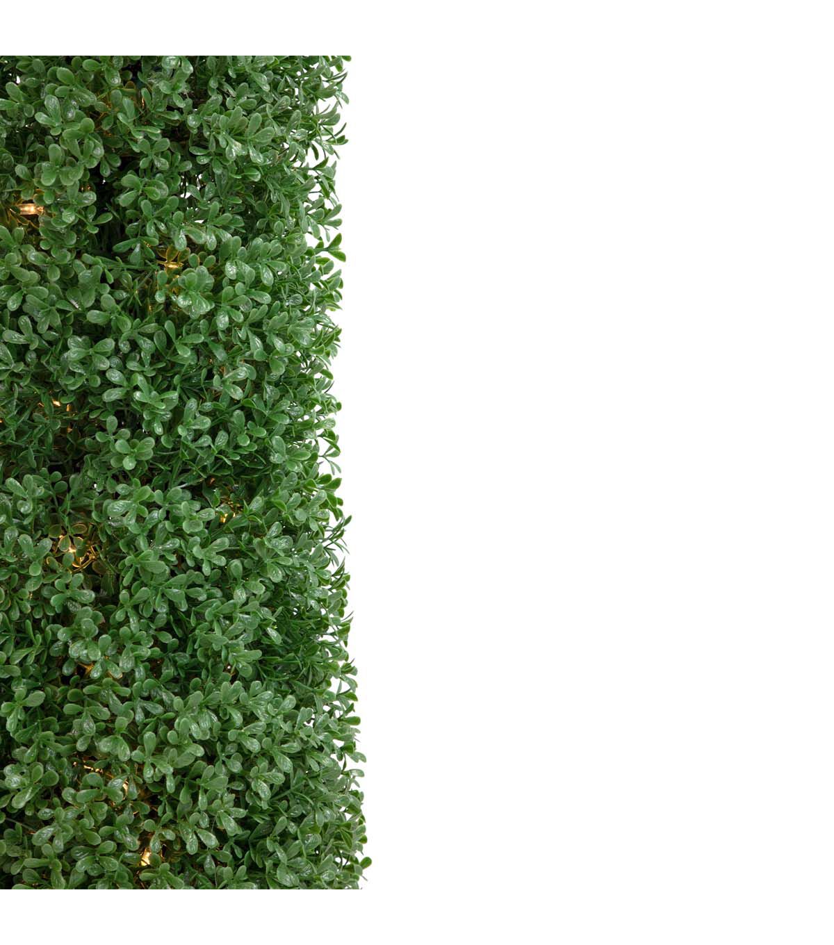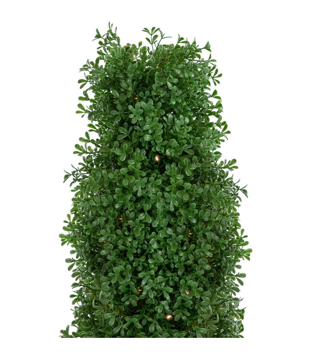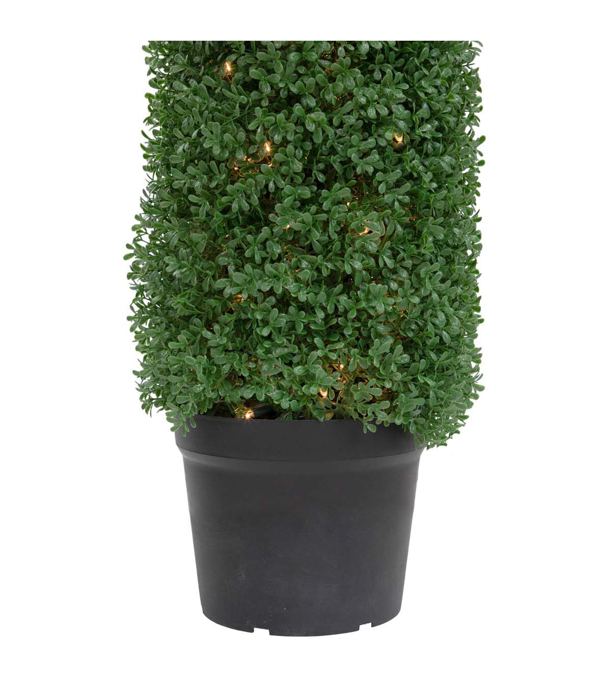 Freshen up your home or outdoor living space with our natural green artificial boxwood topiary tree. Featuring refreshing boxwood with a hearty realistic appearance it requires no maintenance water or sunlight! The topiary comes outfitted with clear incandescent mini lights for some added sparkle. Just perfect for patio decor or for making an entryway statement. Boxwood topiaries are also great for adding some greenery to an empty corner needing a little something!