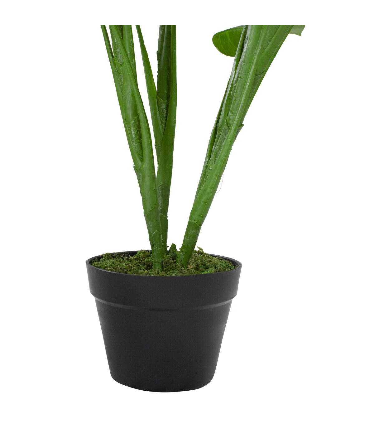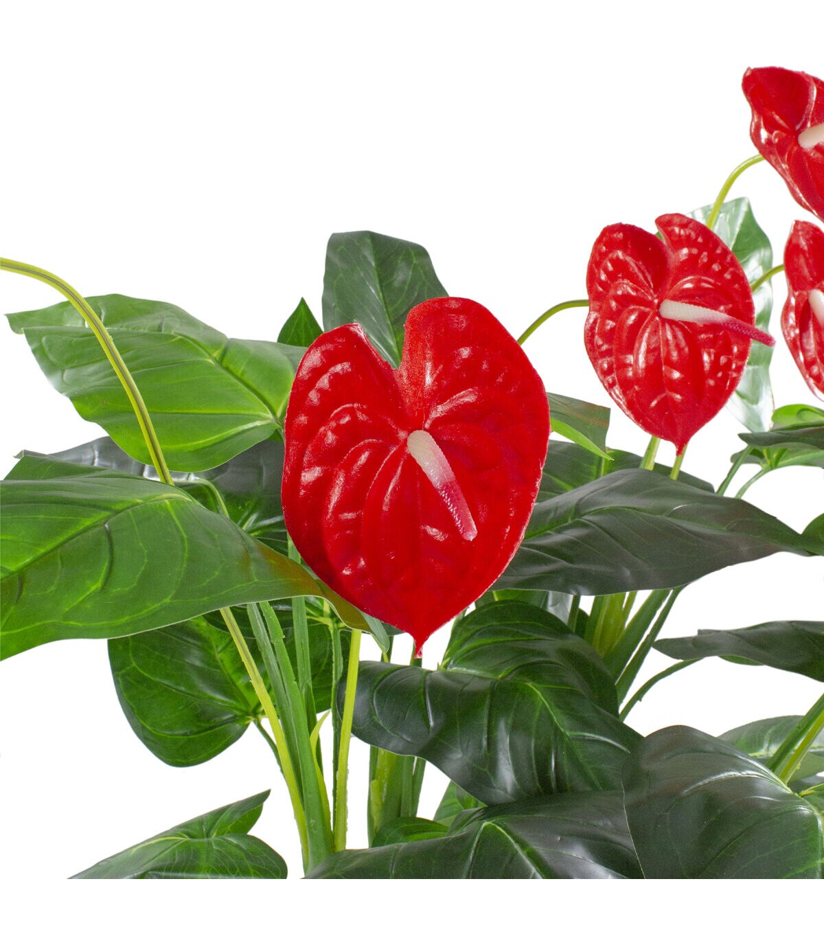 Create your indoor garden oasis with this beautiful green and red anthurium plant placed in a black plastic pot. Bring the charm of outdoor to your interior with this unique piece of greenery! This plant will make a great addition to any space with limited natural lighting whether it be your home office or place of business. Product Features: Tropical Artificial Anthurium Plant Filled with lush red Anthurium flowers Surrounded by large green foliage leaves Sturdy green stems Comes in a black plastic pot filled with artificial moss and dirt Recommended for indoor use or outdoor covered use Dimensions: 41"H x 27"W x 24"D (fully fluffed) Material(s): plastic