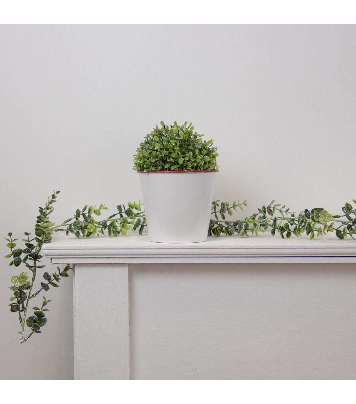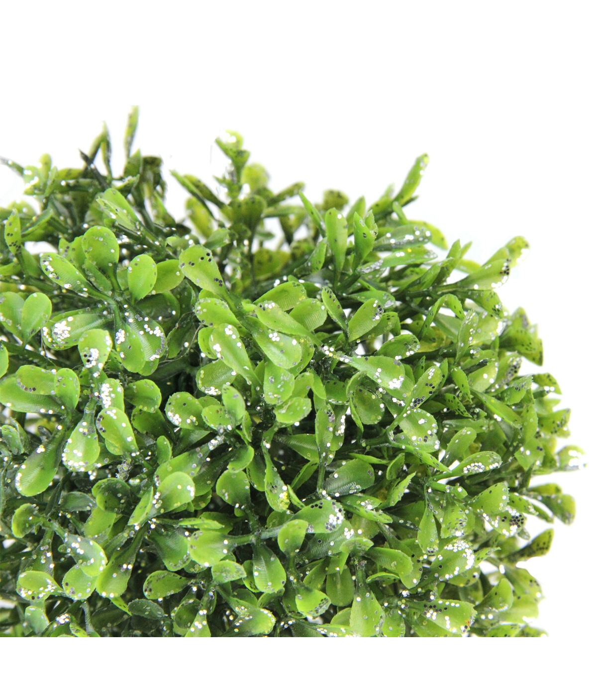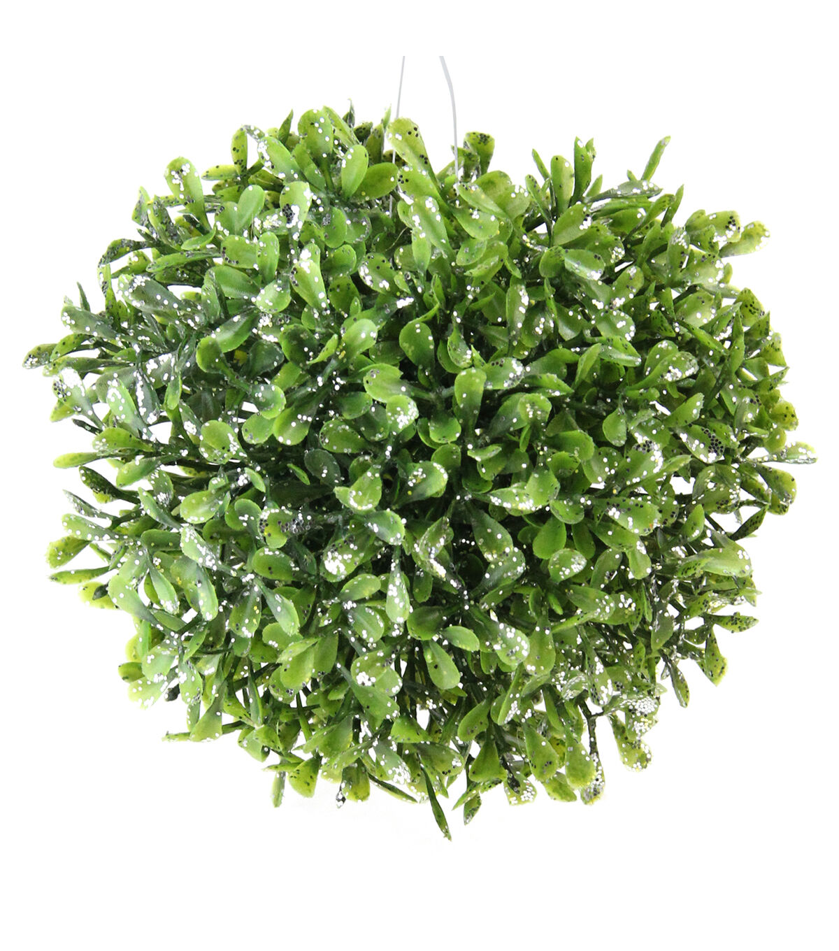 Bring the outdoors in with this unique boxwood ball. Shimmering silver glitter adds the perfect amount of sparkle. Perfect for mantles tabletops or hanging. Product Features: Realistic leafy tips Embellished with silver glitter Fully dimensional decoration Add it to a bowl or vase for a springtime feel anytime Recommended for indoor use only Dimensions: 5" diameter Material(s): plastic