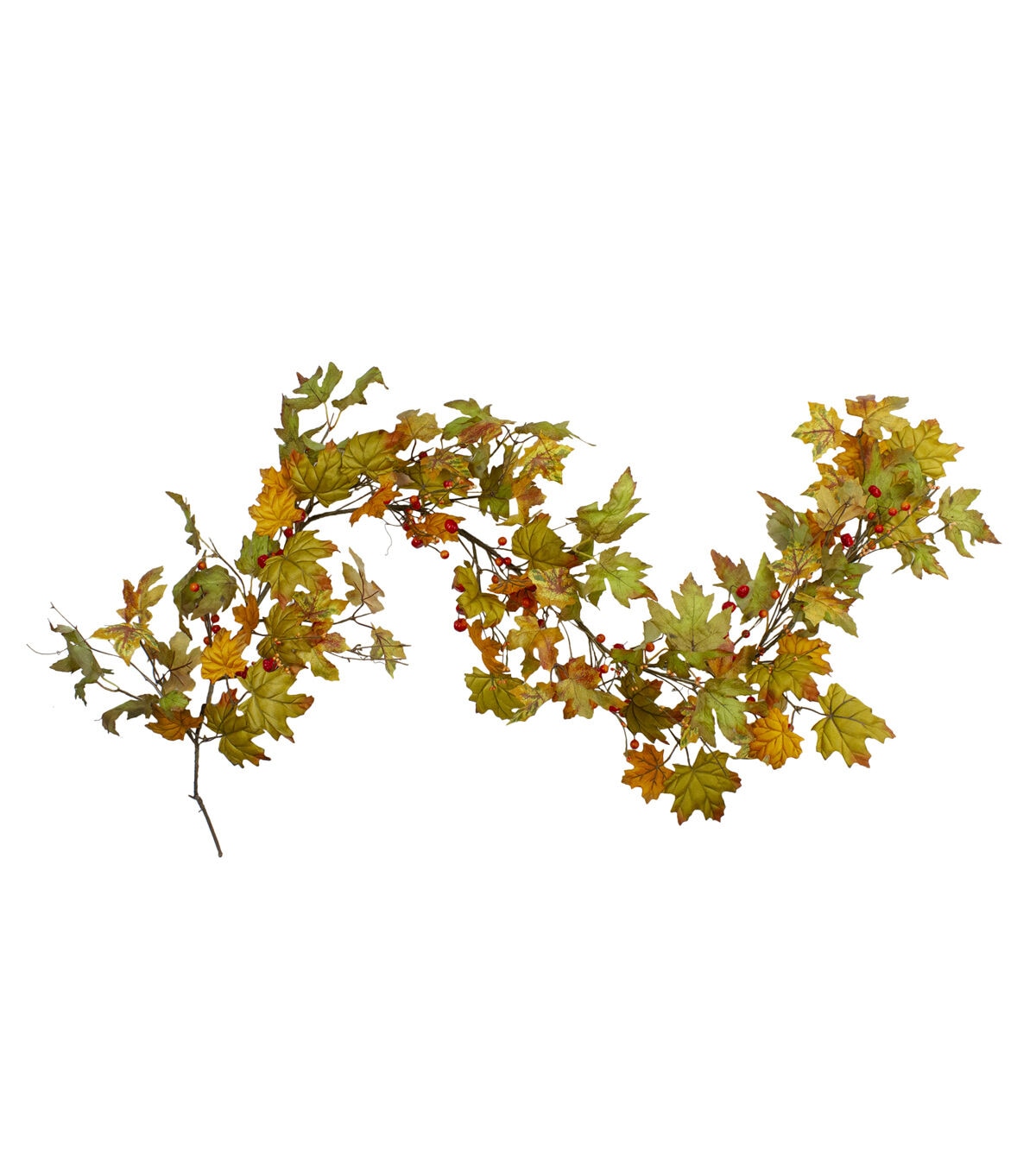 This gorgeous harvest garland provides all the wonderful colors of Autumn. A mix of foliage intertwines with berries and twigs. Perfect for hanging or used as part of your Thanksgiving table centerpiece.