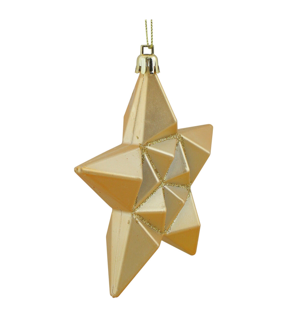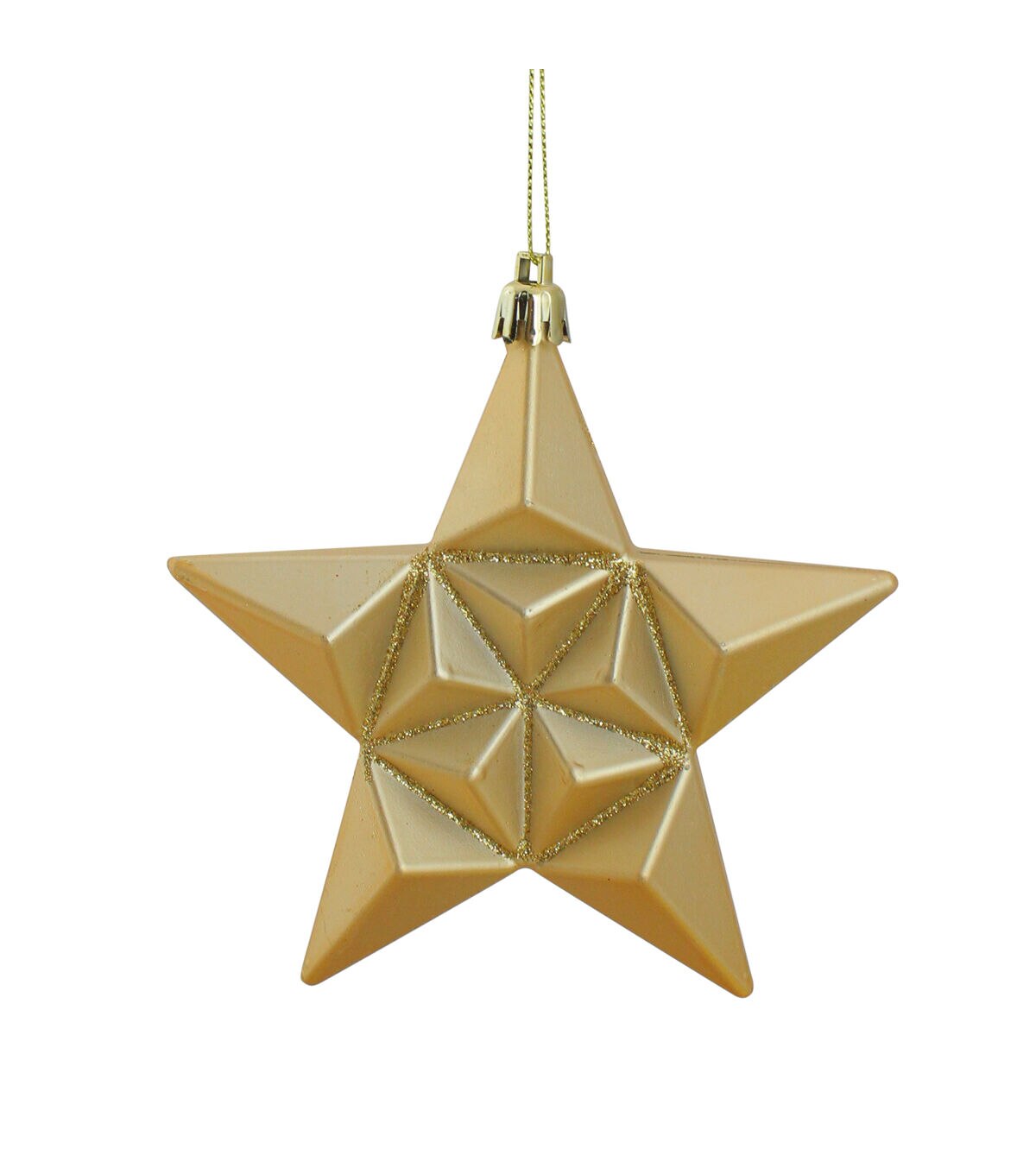 - Gold glittered star Christmas ornaments with a matte finish