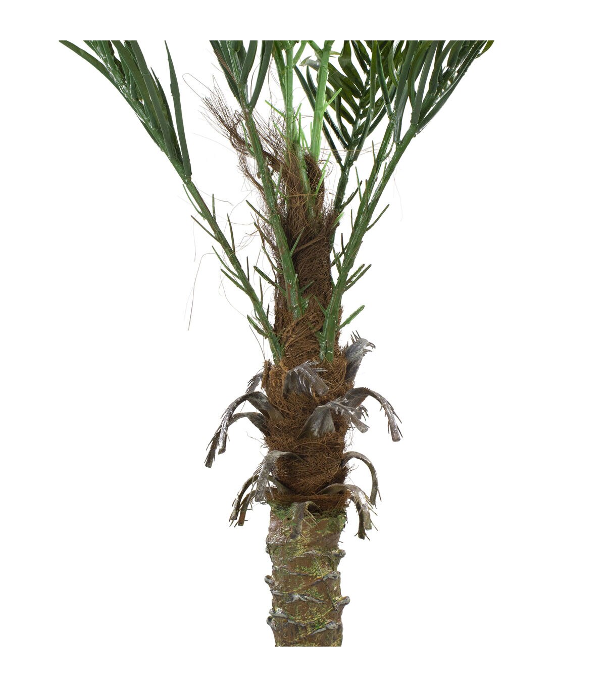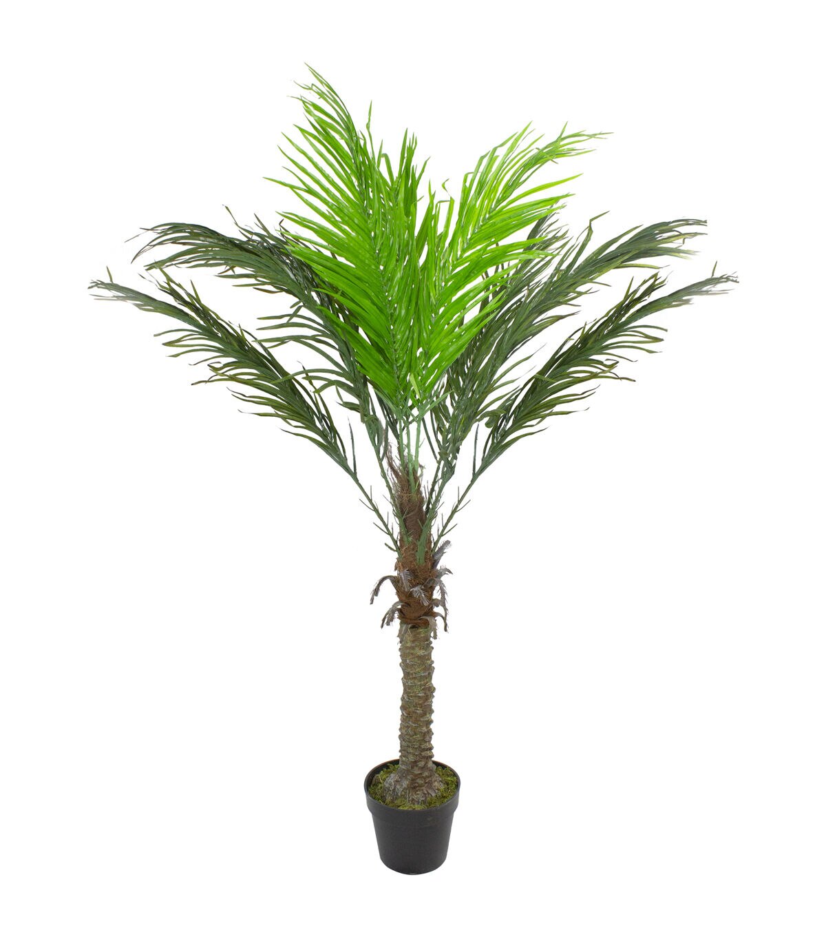 - Features a realistic trunk with two tone green fronds