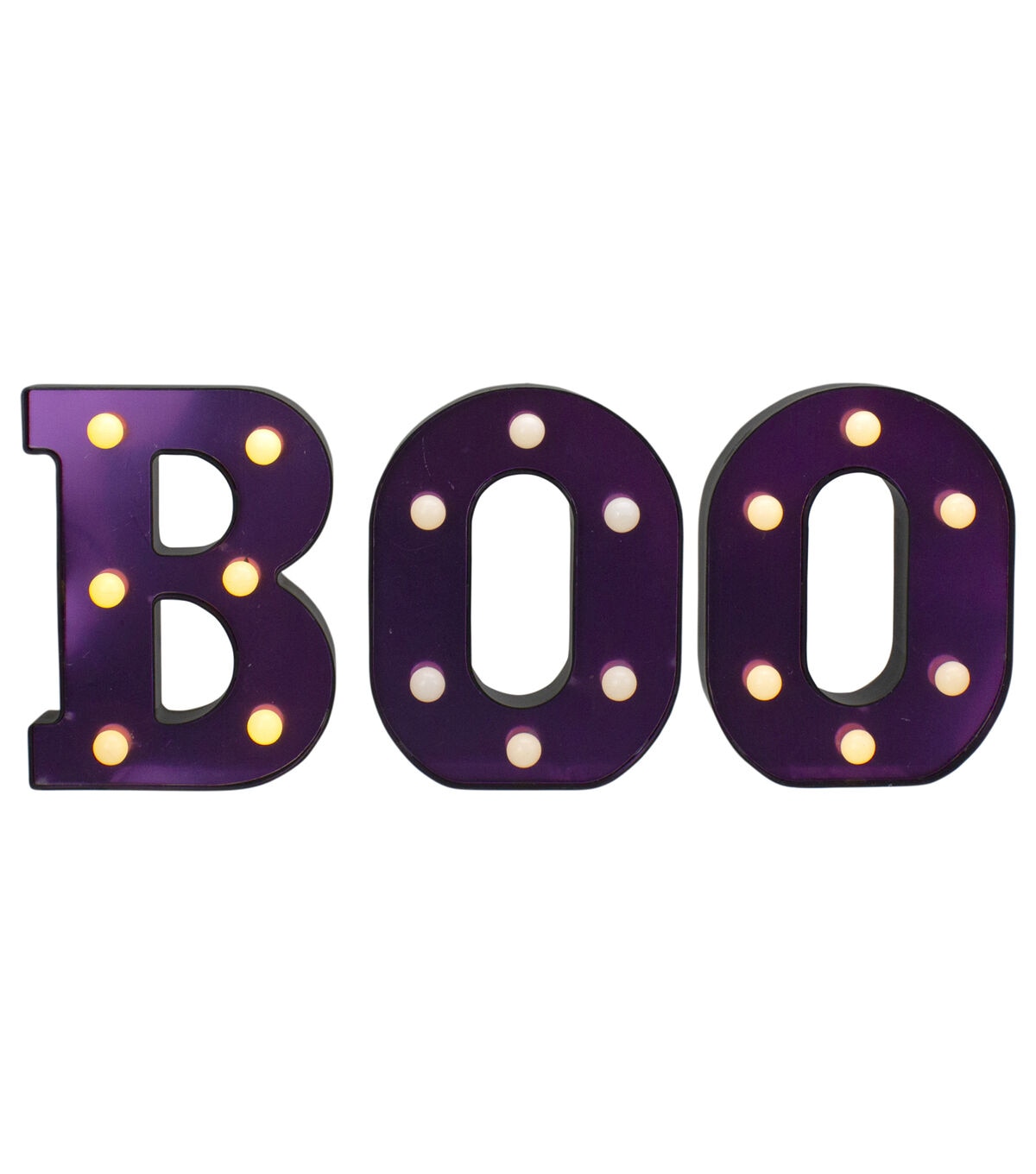 Add some light to your Halloween decor with this illuminated marquee sign. It features the word “BOO" and will be sure to send a chill down your spine. Great for parties or use as a nightlight.