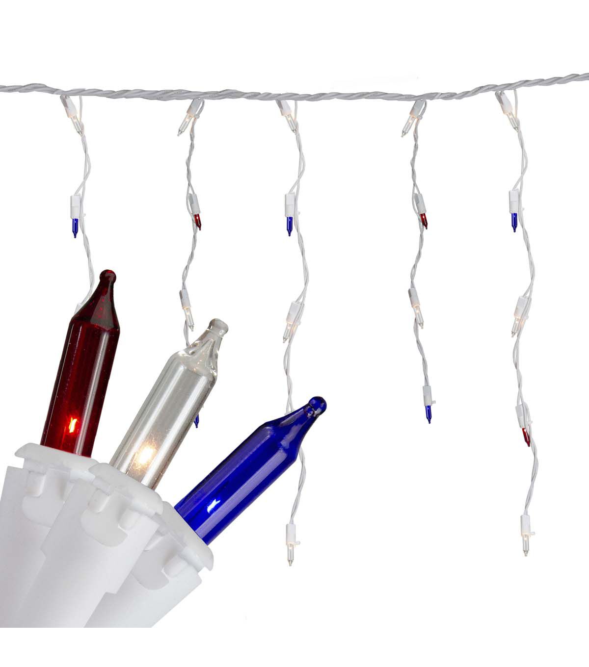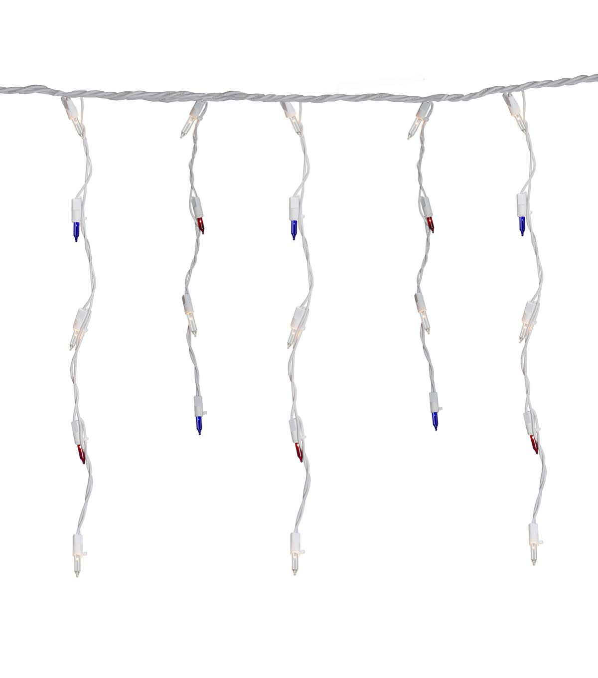 - 105 count red white and blue incandescent icicle lights