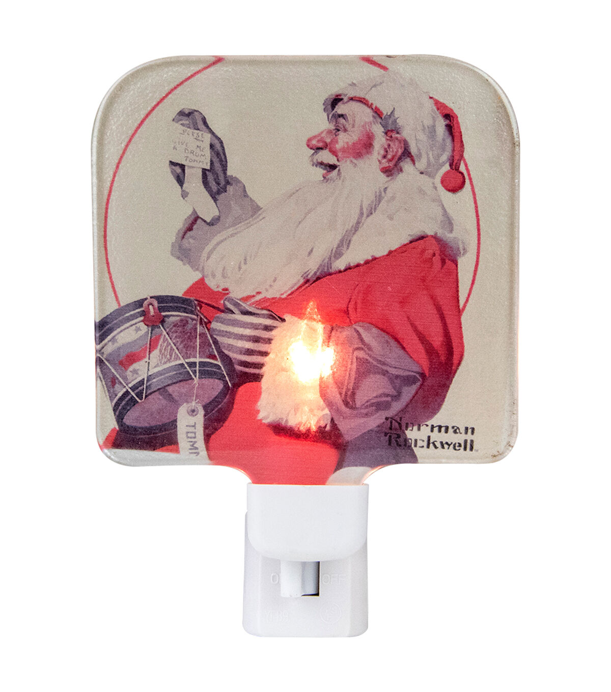 Add this stunning glass night light to your home for the holidays. It depicts a print of the famous Norman Rockwell 'A Drum for Tommy' painting. This night light is perfect for illuminating any room in your home simply plug into an outlet and watch it come to life.