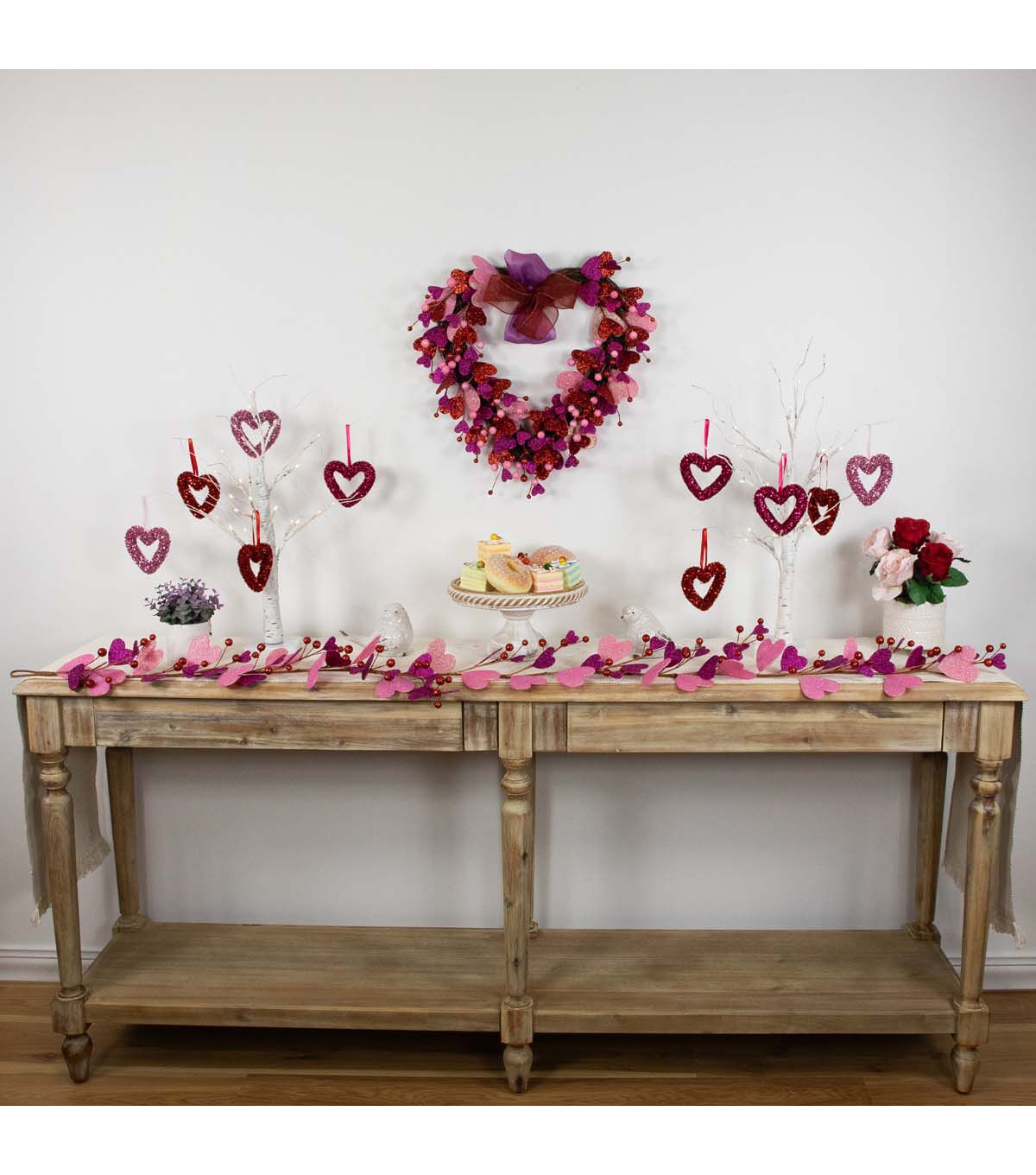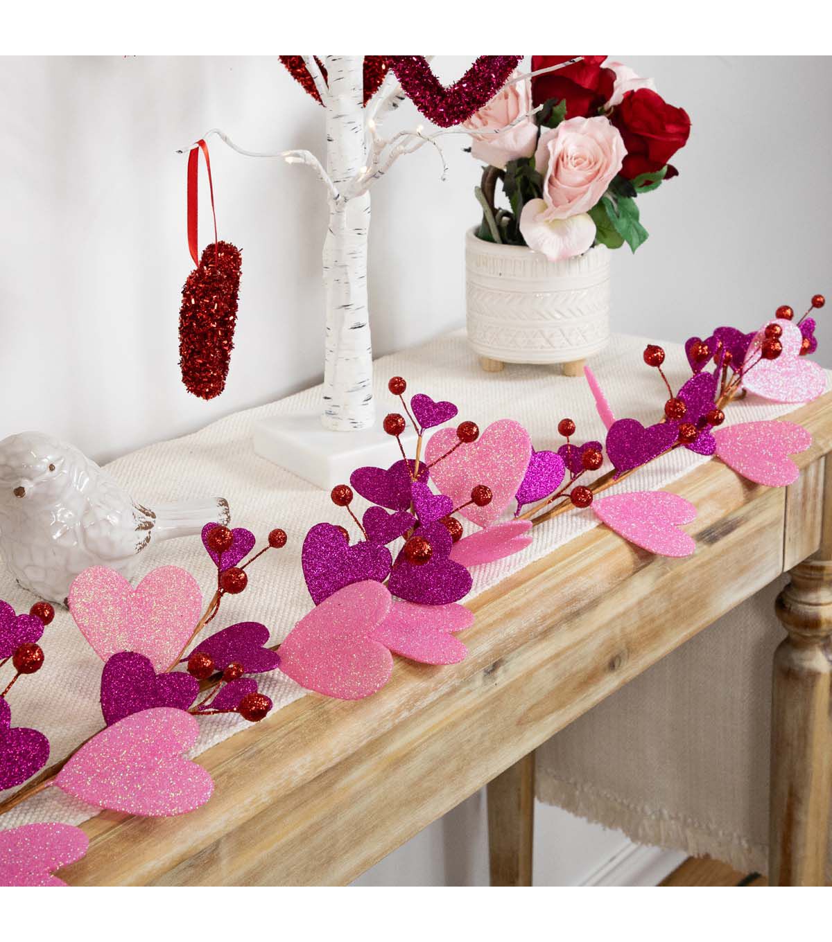 Bring a touch of romance to your home with this beautiful garland that will make your Valentine's Day celebration unforgettable. The garland's unlit design allows for versatility, so you can use it in any room of your home. Hooks on each end make it easy to hang, and the garland is suitable for indoor use only.