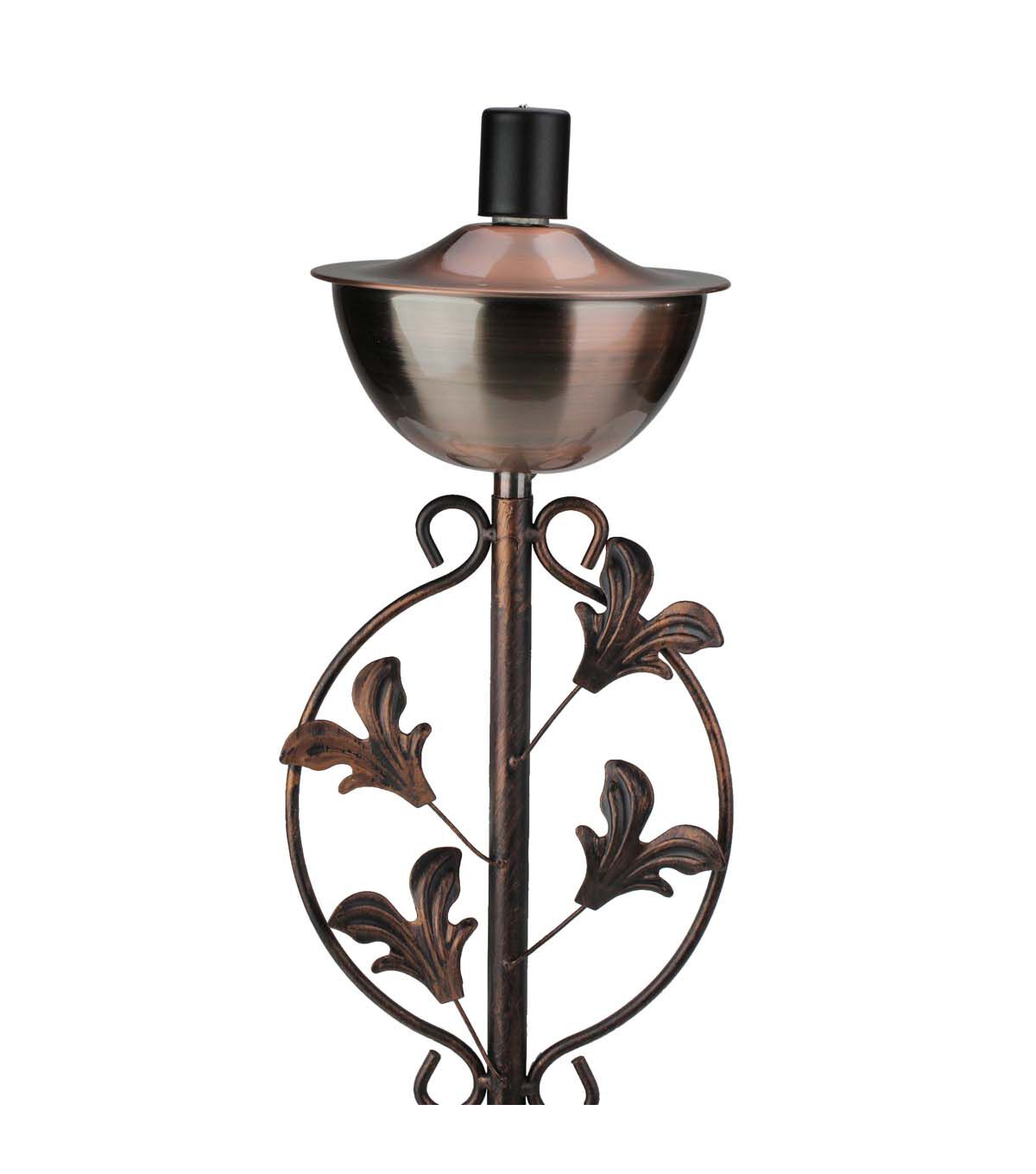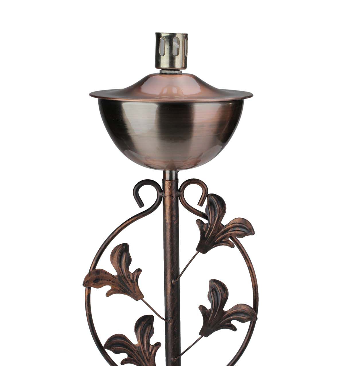 64.5" Brushed Copper Floral Motif Outdoor Patio Garden Oil Lamp Torch
