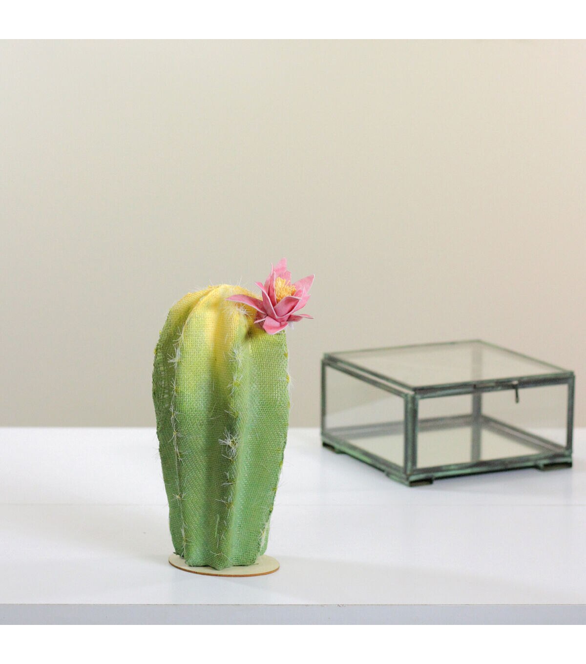 - Green and yellow cactus artificial plant with flower
