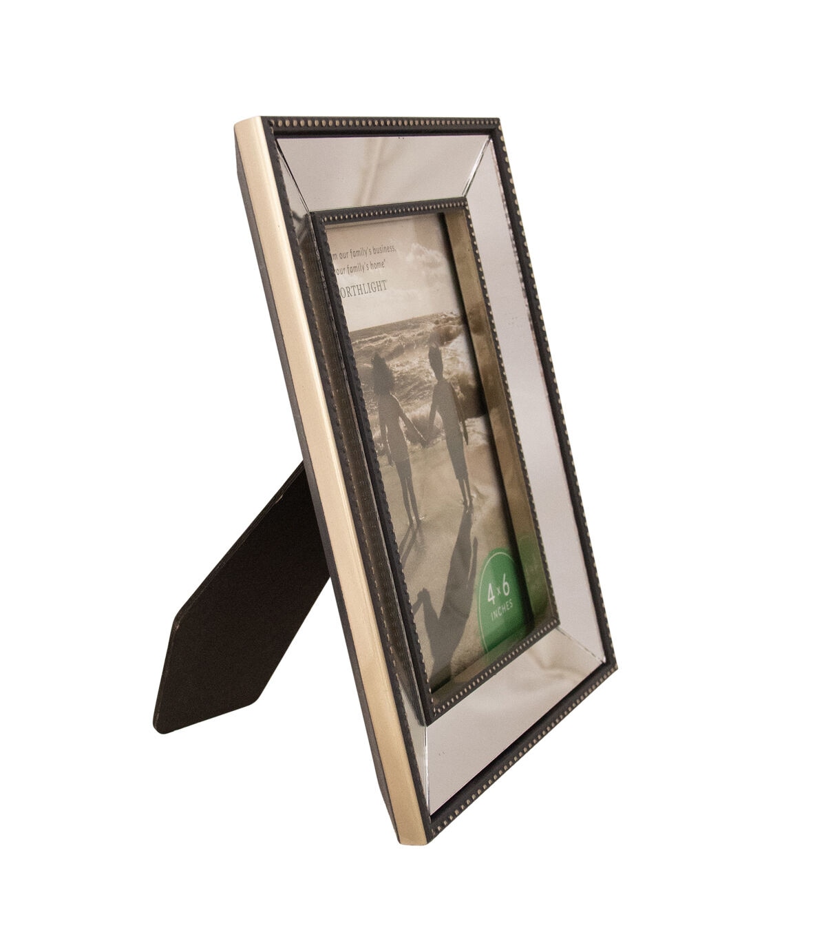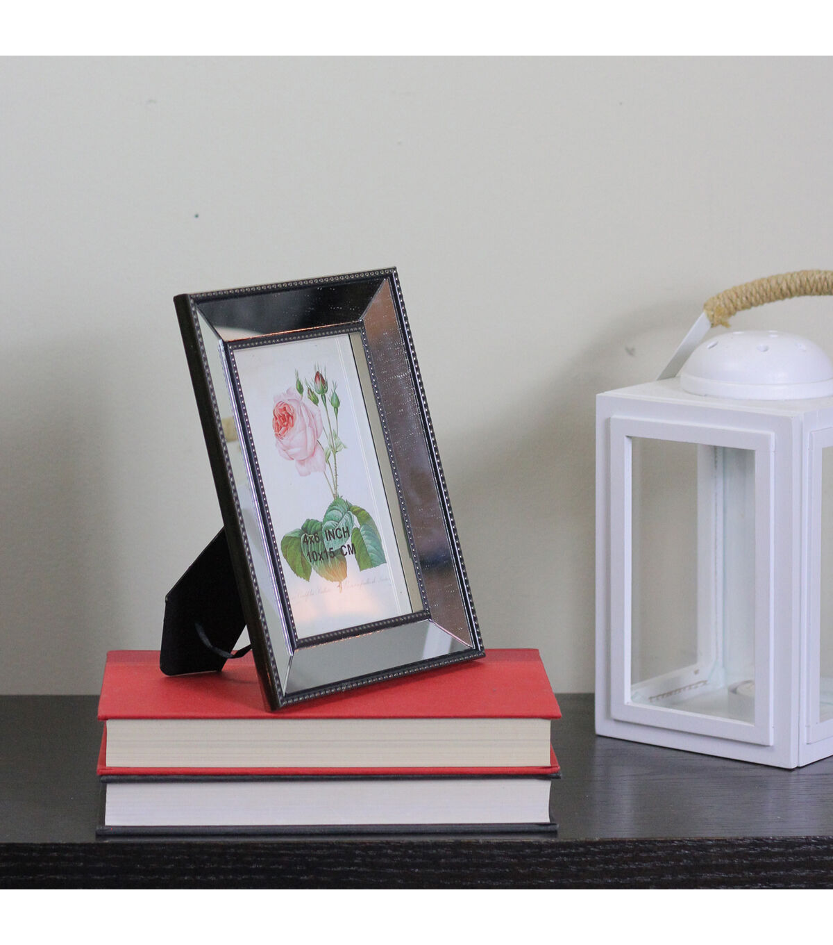 - Black contemporary 4 by 6 inch mirrored photo frame