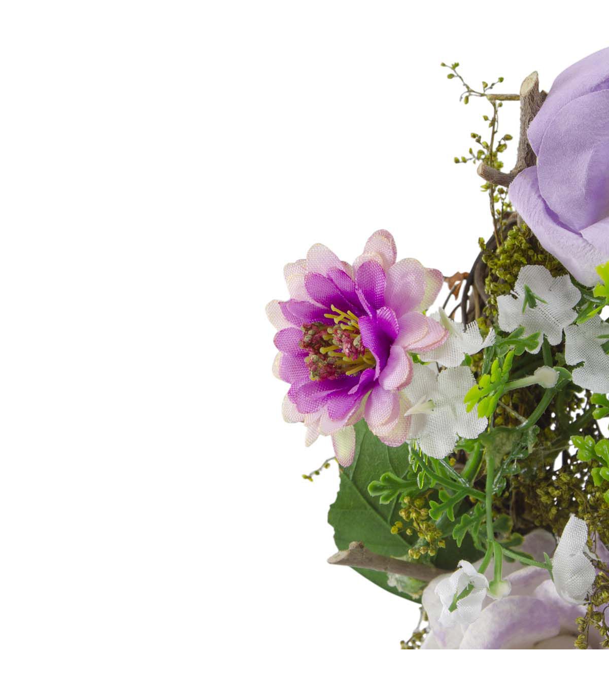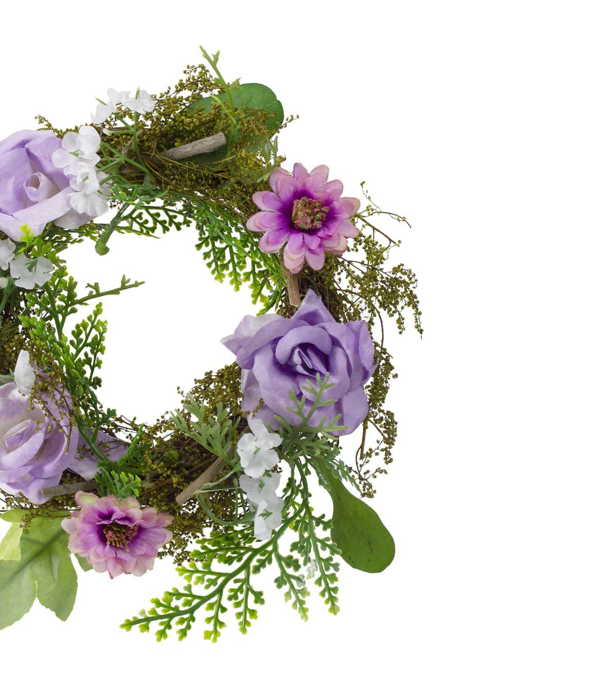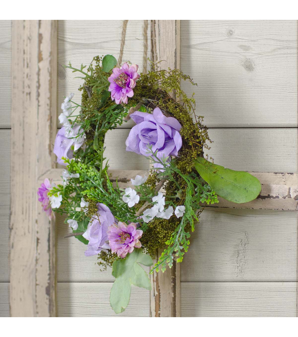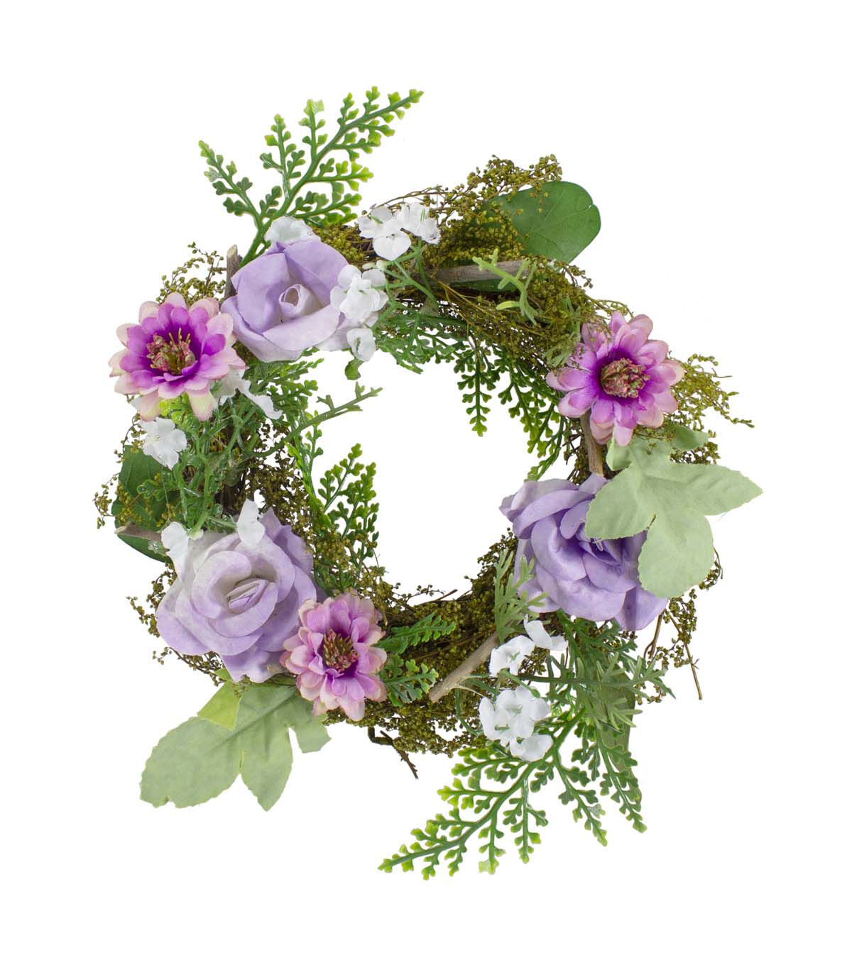 Mini Rose and Foliage Spring Wreath Pink and Purple 8"
