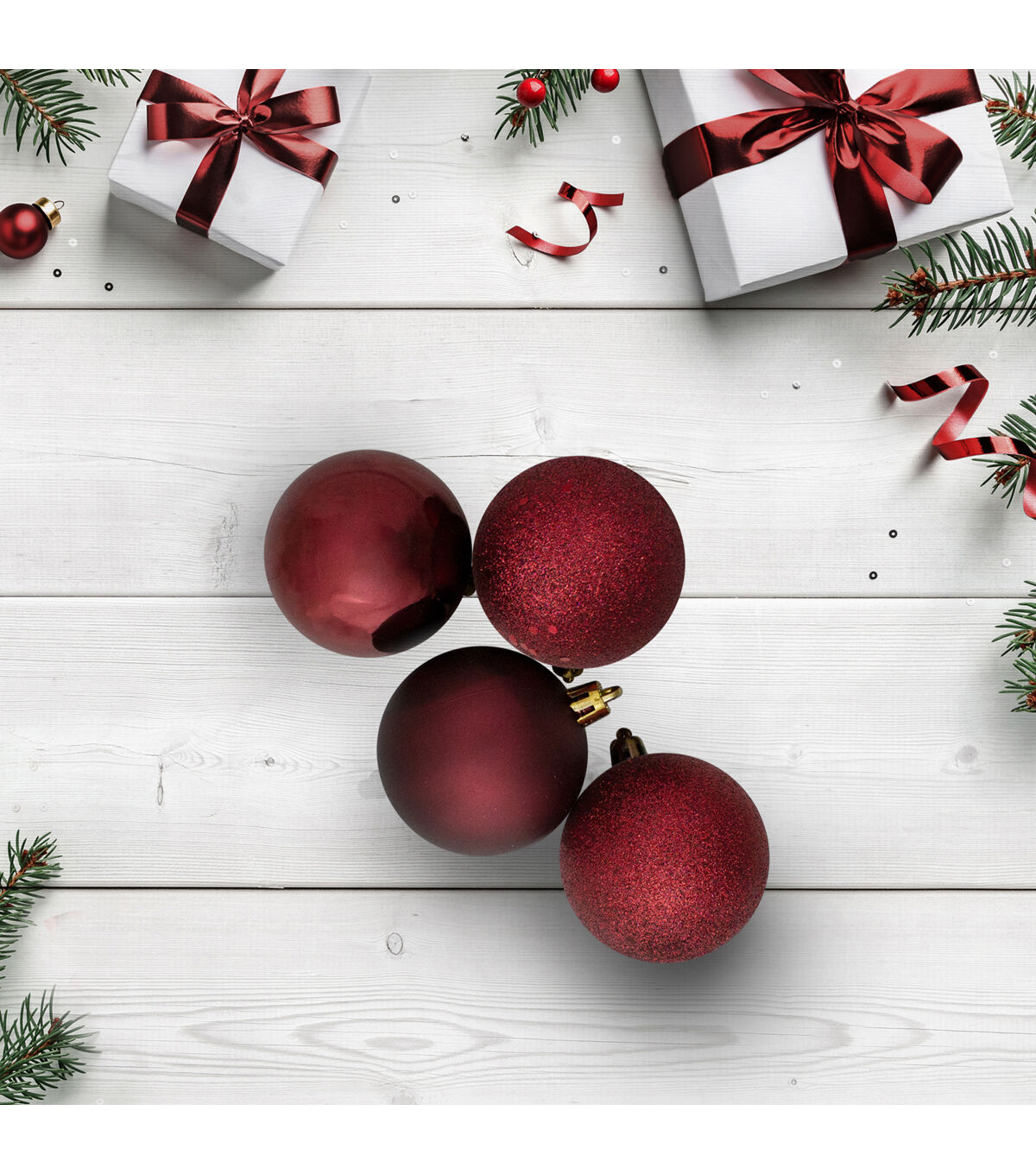 - Burgundy 4-finish Christmas hanging ball ornaments