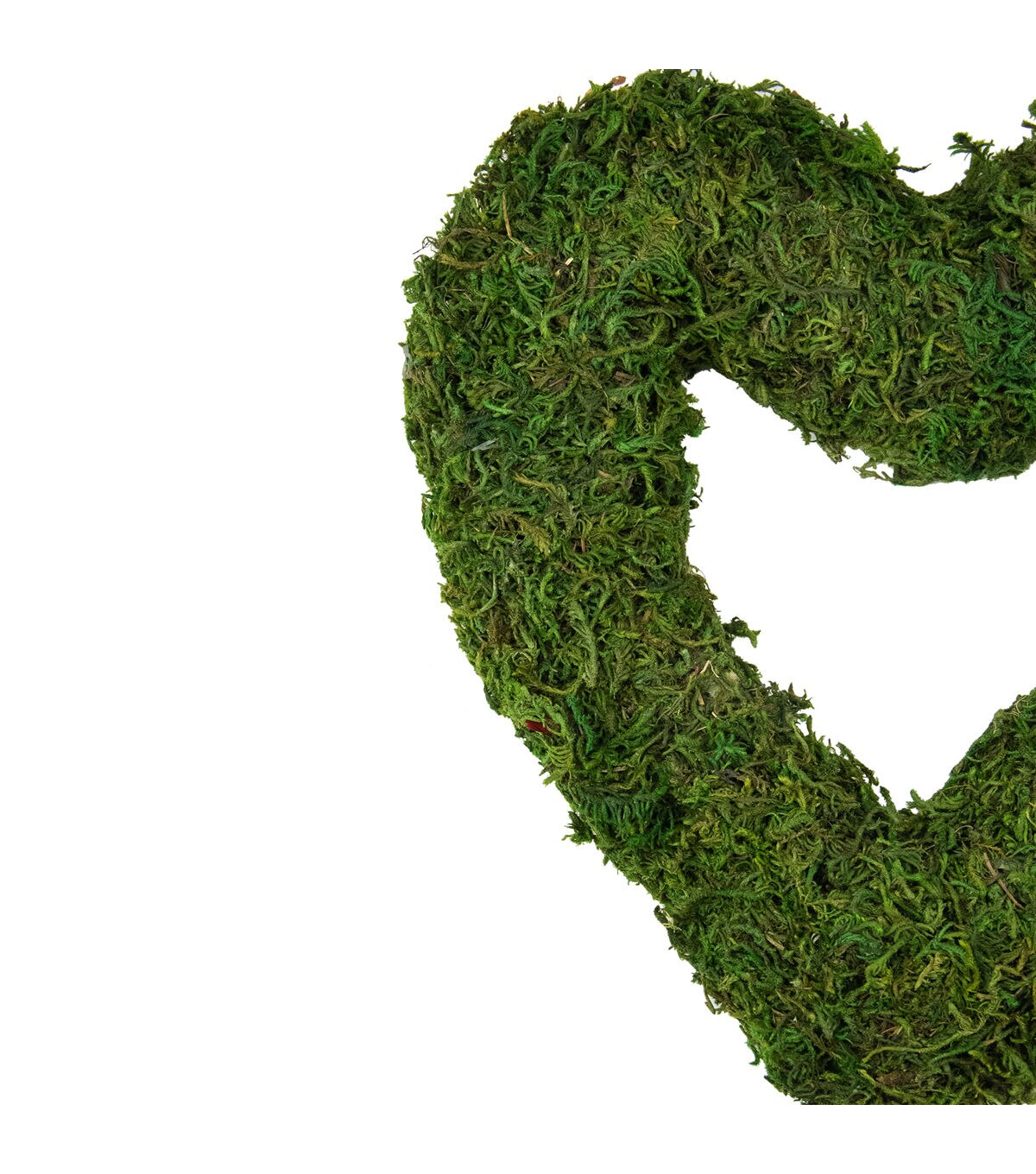 With spring right around the corner this adorable unique wreath is the perfect way to welcome in the new season. Decorate with ribbon or lights or leave plain for a simpler look. This verdant-hued heart-shaped wreath works perfectly at home or the office bringing a bit of spring-summer cheer wherever you go. Product Features: Heart-shaped wreath is covered in green reindeer moss Flat back allows wreath to hang nicely against any flat surface Unique green reindeer moss tucked into green twigs Recommended for indoor use or outdoor covered use No assembly required - wreath comes in 1 piece Perfect on your front door over the mantels on walls for all your spring and summer decorating Dimensions: 13.5"H x 12.5"W x 2"D (measured from outermost edge to outermost edge across the wreath) Material(s): foam