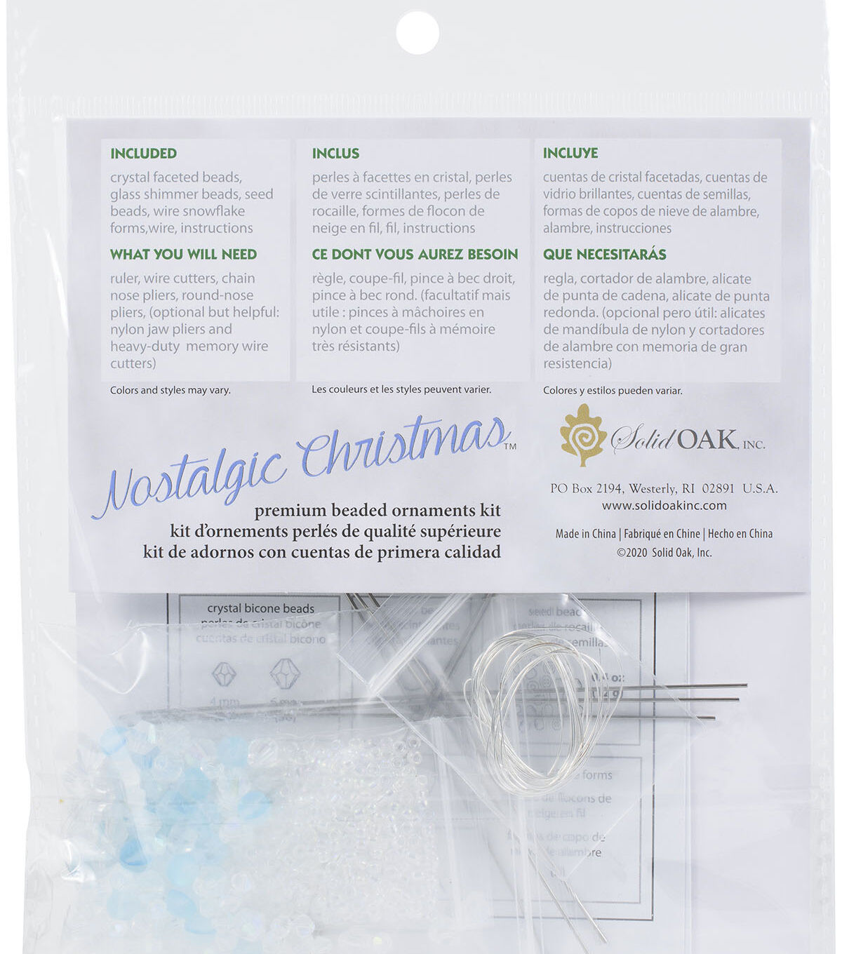 Solid Oak-Nostalgic Christmas Beaded Crystal Ornament Kit. This kit has everything you need to create beautiful holiday ornaments! This 6x6.5 inch package contains materials to create between four and eight beaded ornaments. Comes in a variety of designs. Each sold separately. Imported.