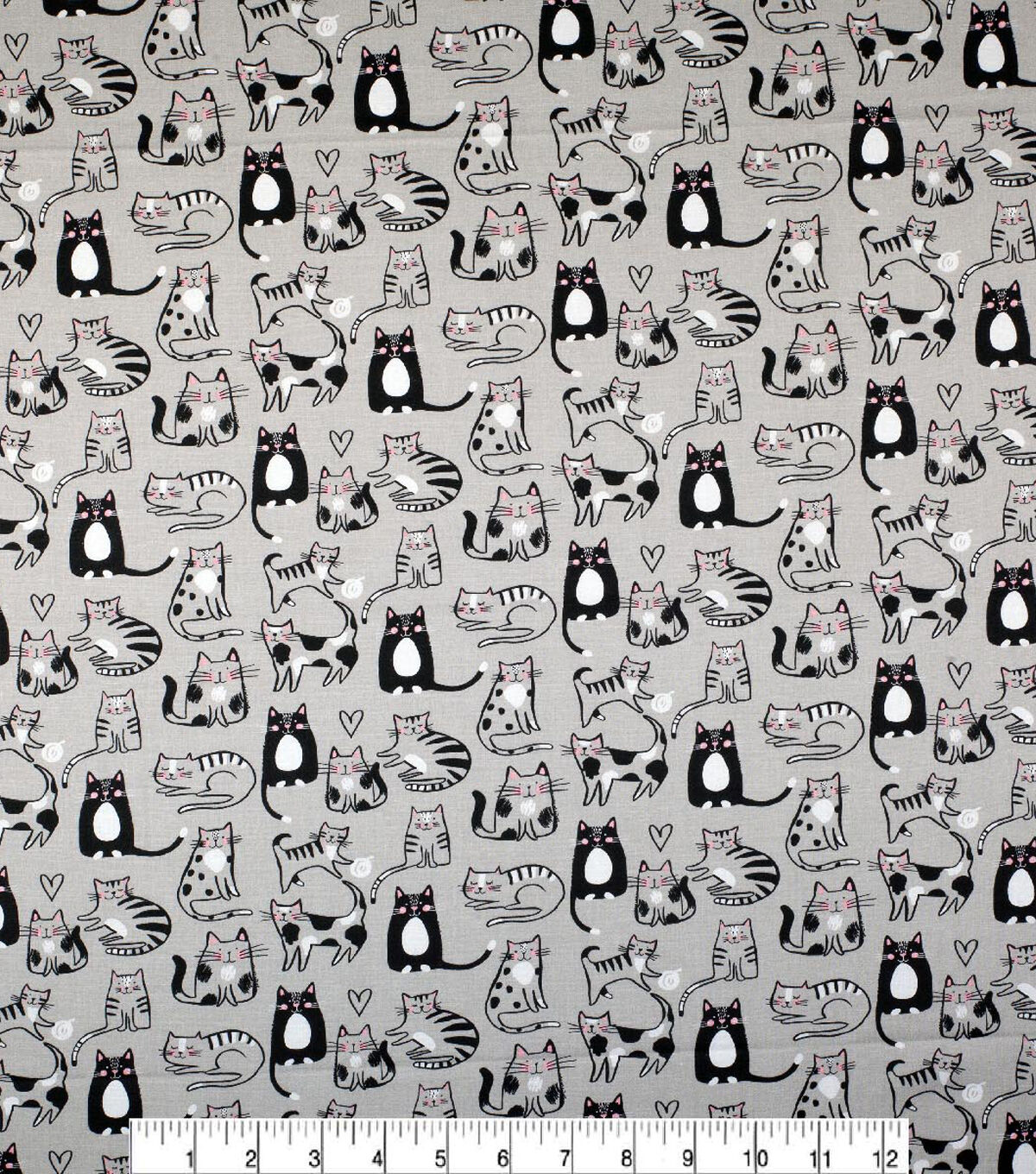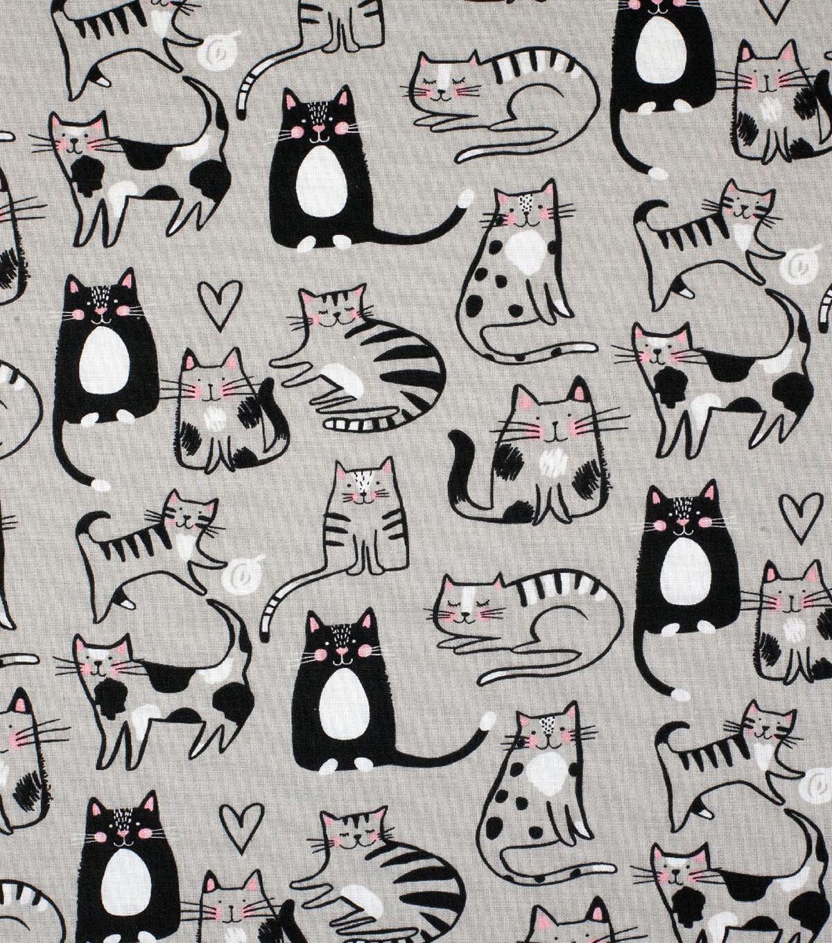 • Novelty Cotton Fabric Gray Sketched Cats