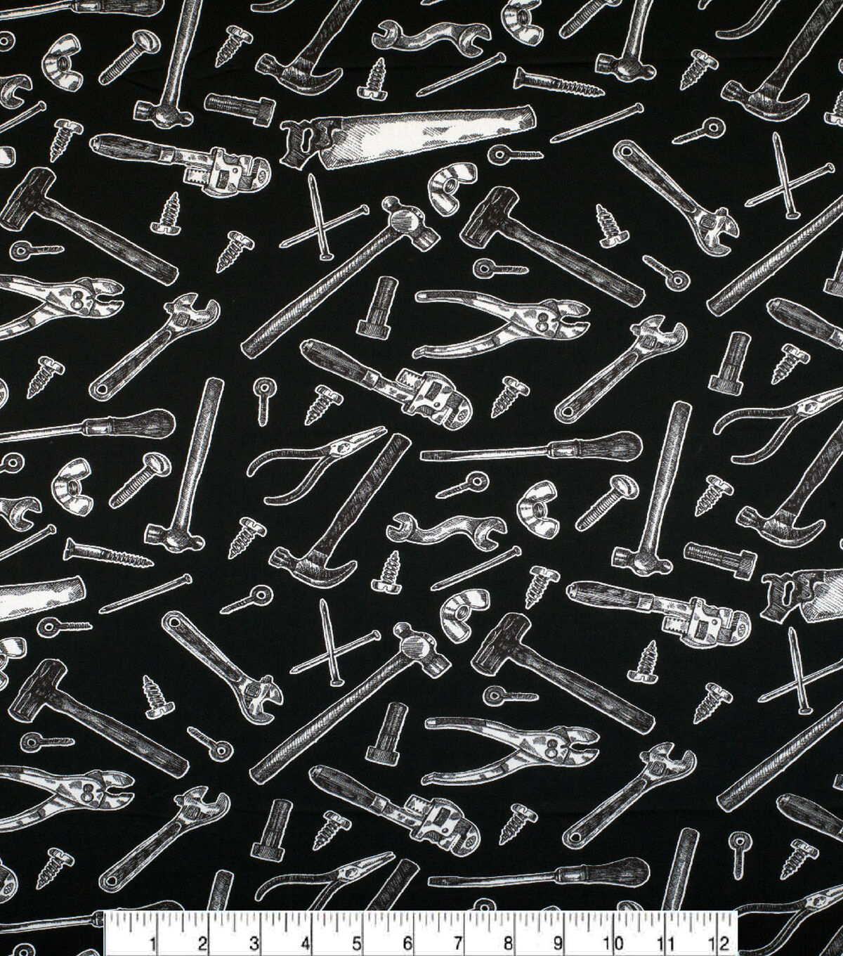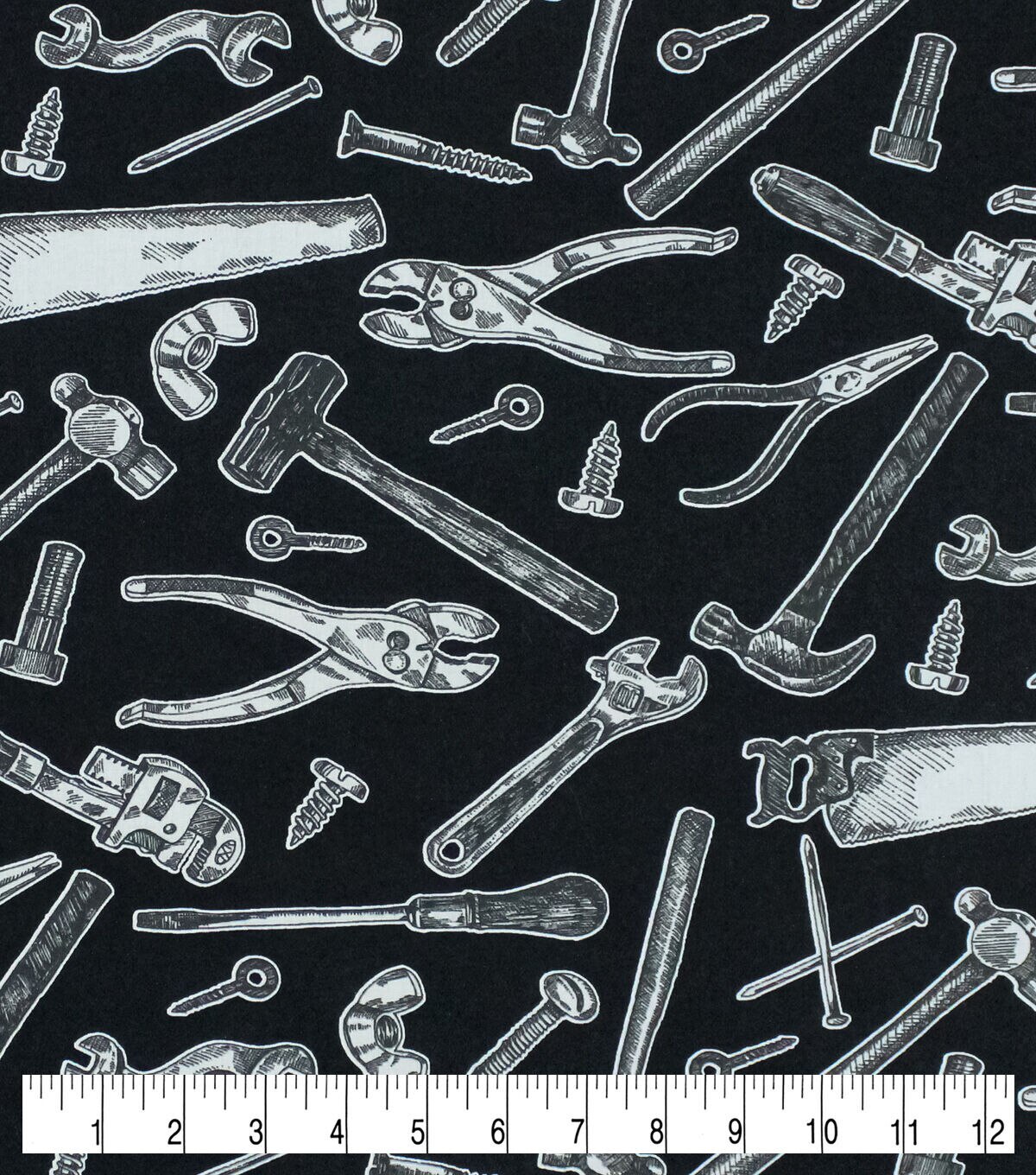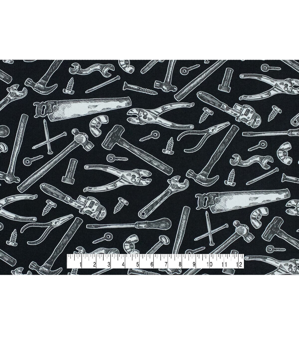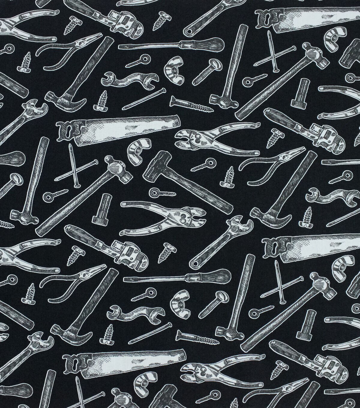 • Novelty Cotton Fabric Handy Tools on Black
