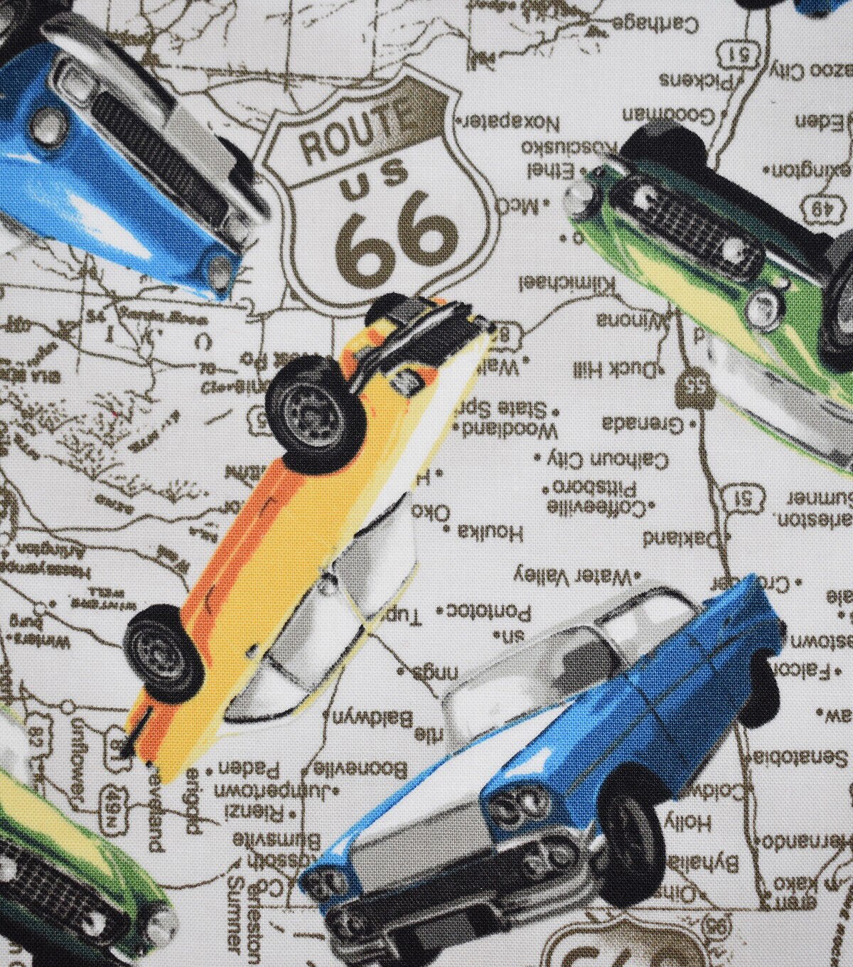 • Novelty Cotton Fabric Route 66 Roadmap